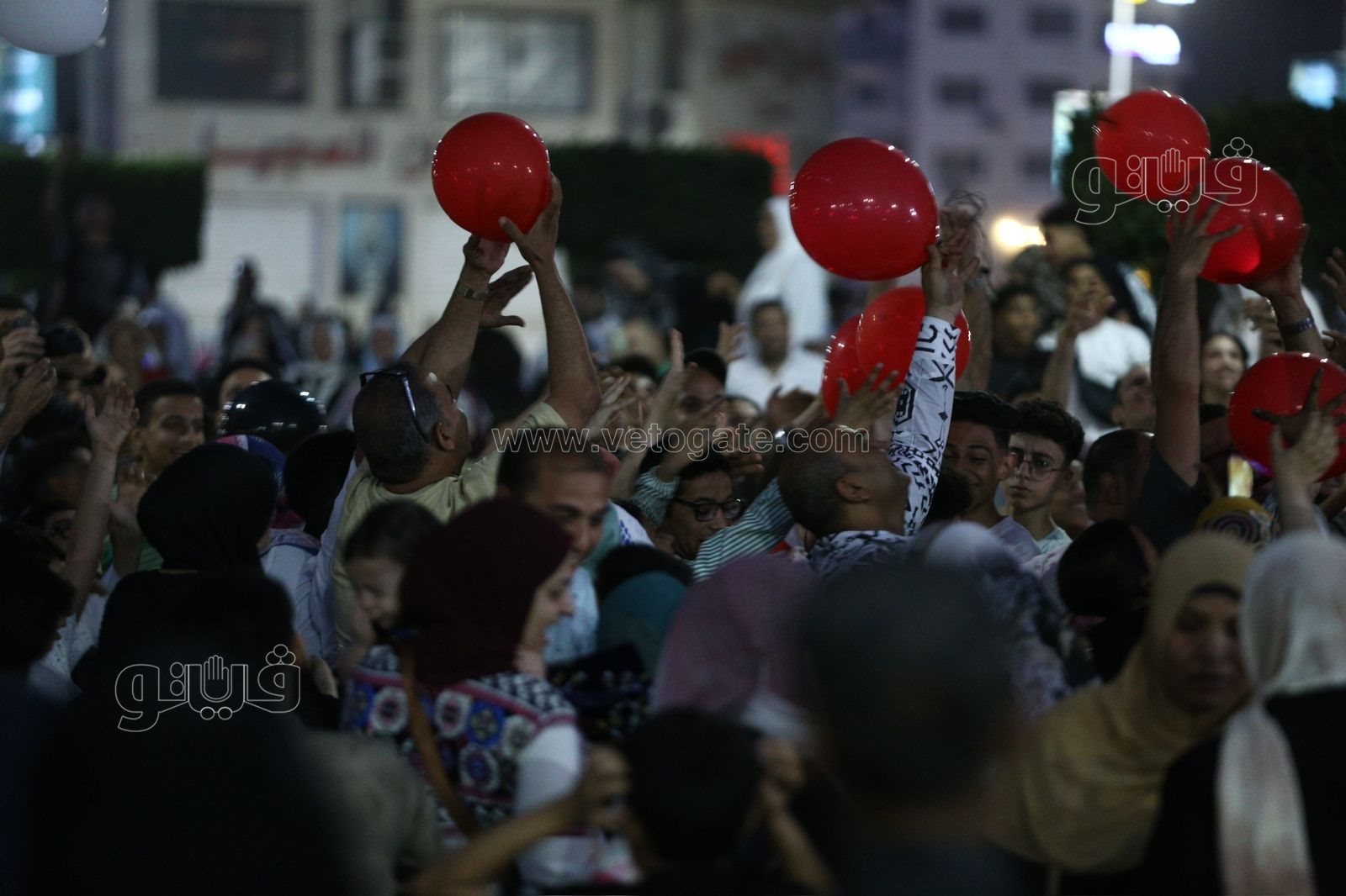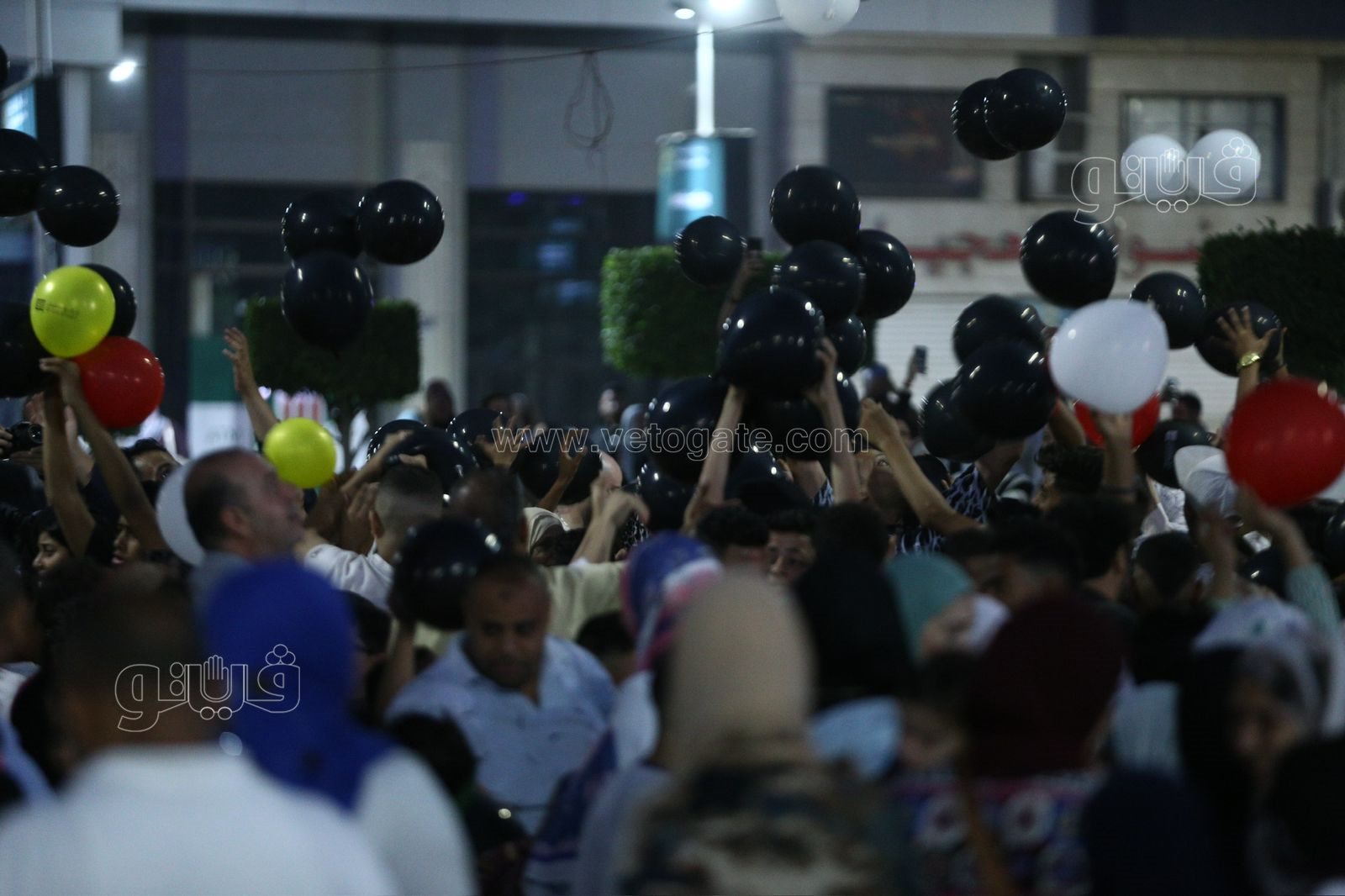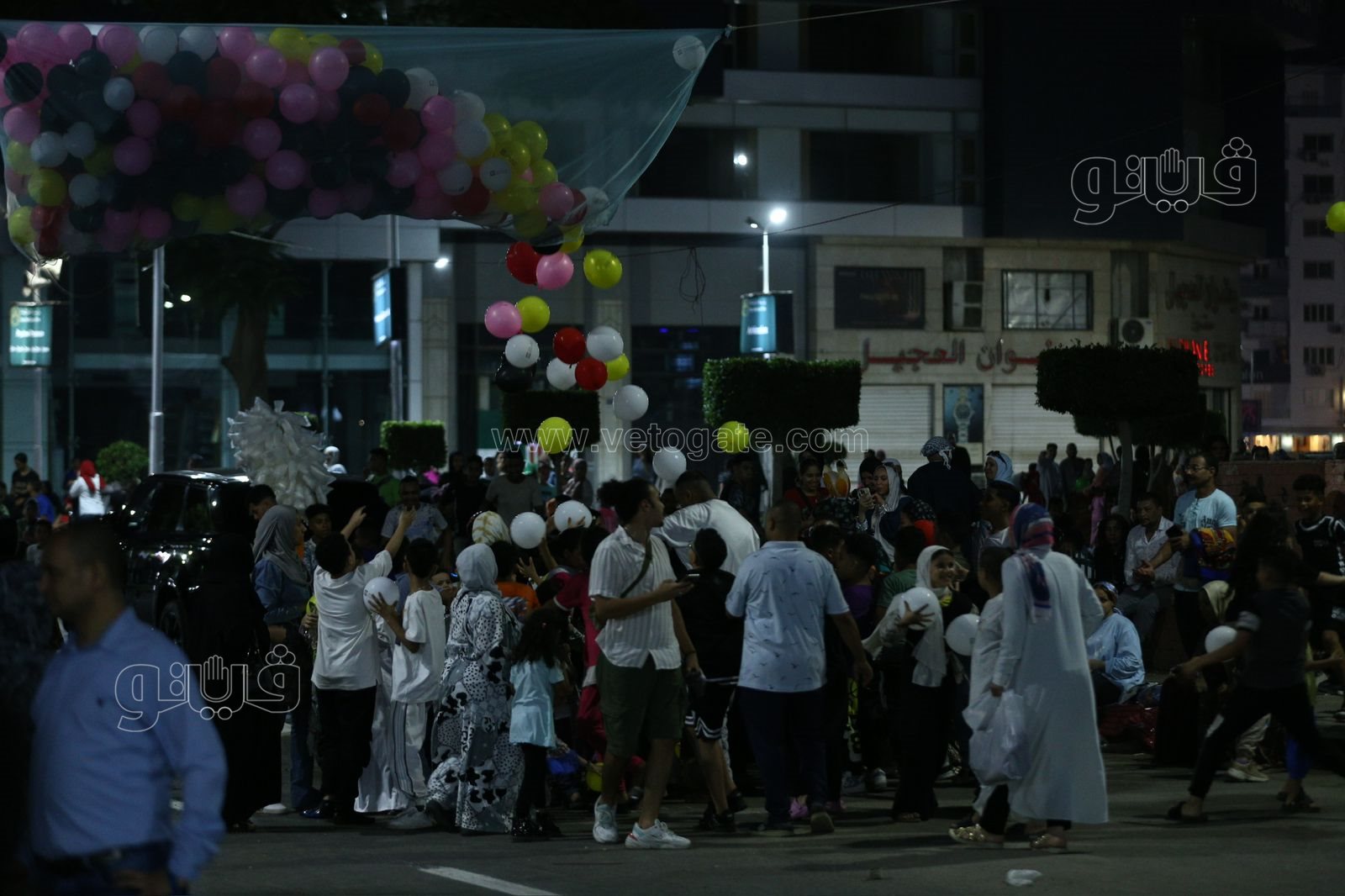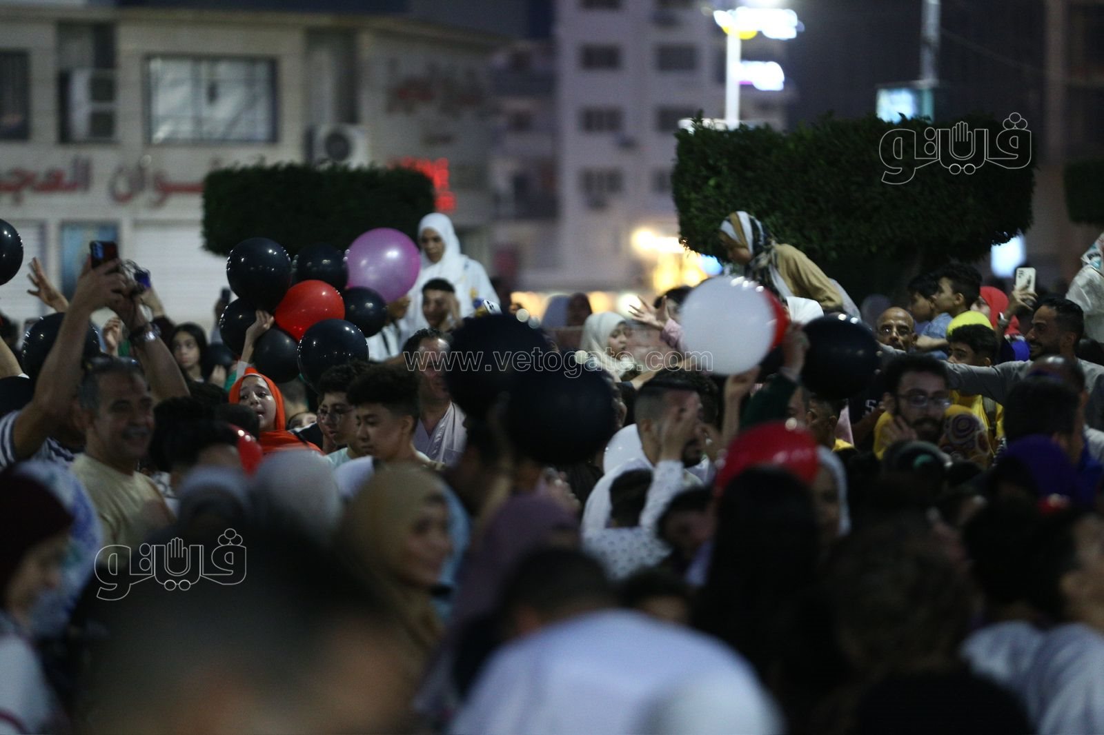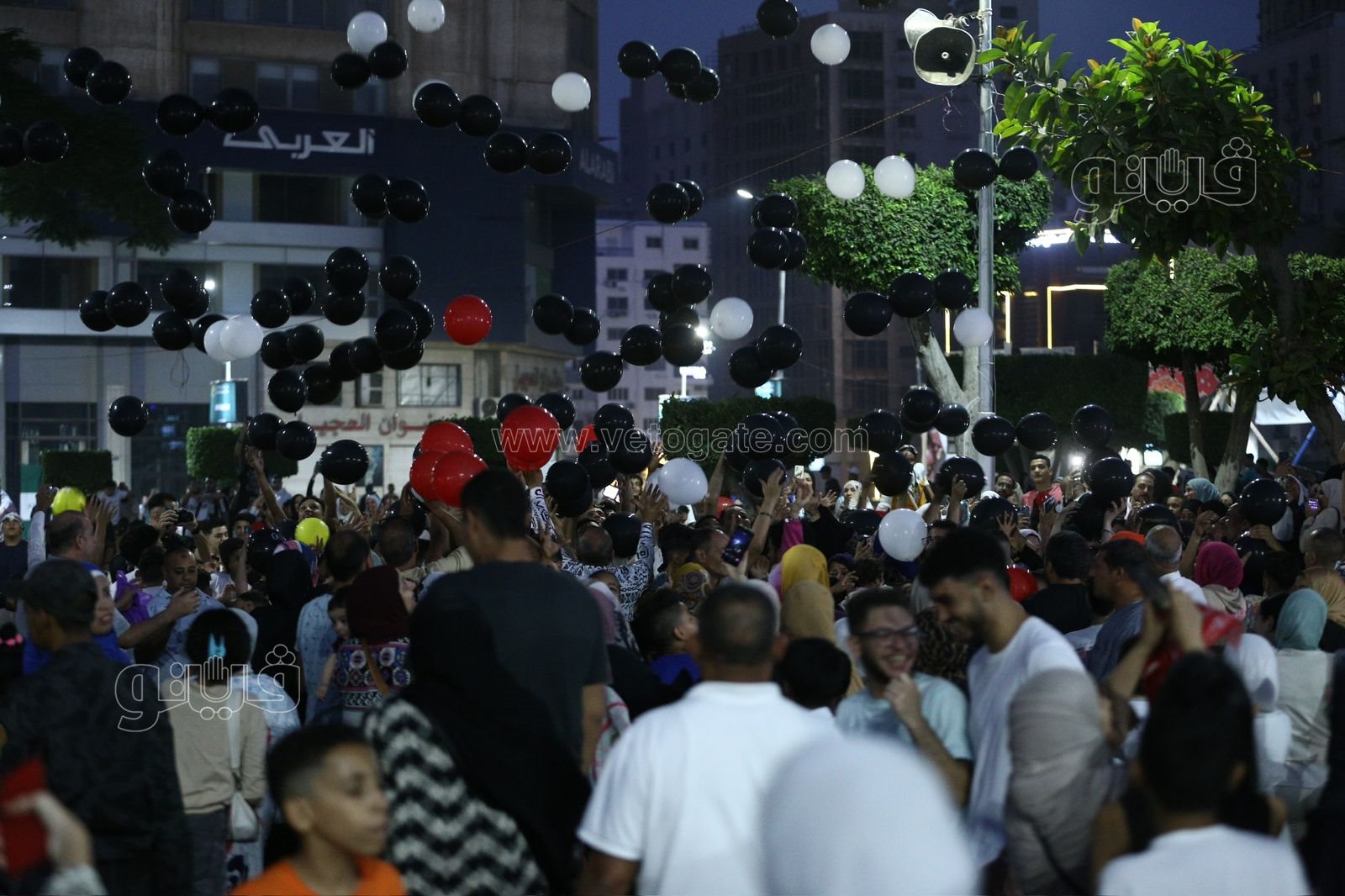 شلالات البلالين تسقط على المصلين احتفالًا بعيد الأضحى بساحة مصطفى محمود (فيديو)