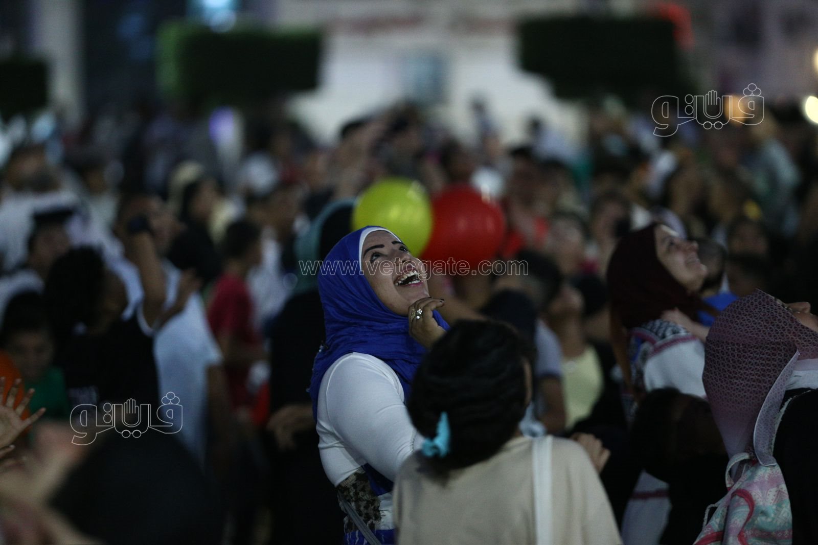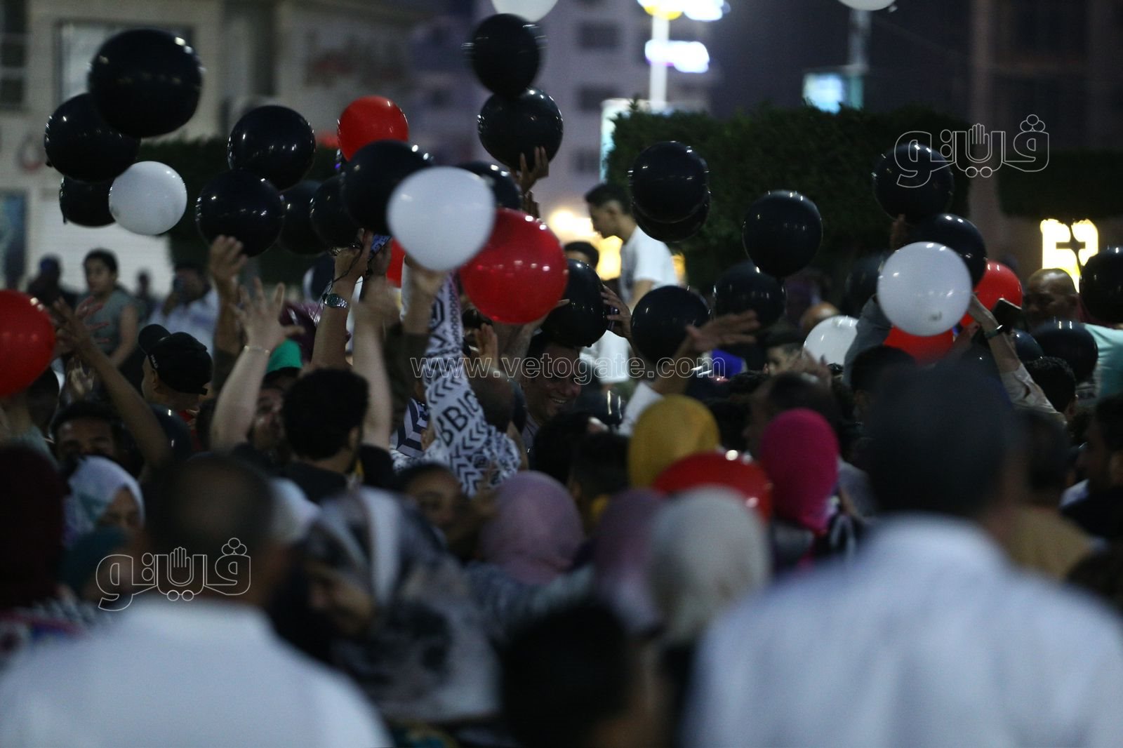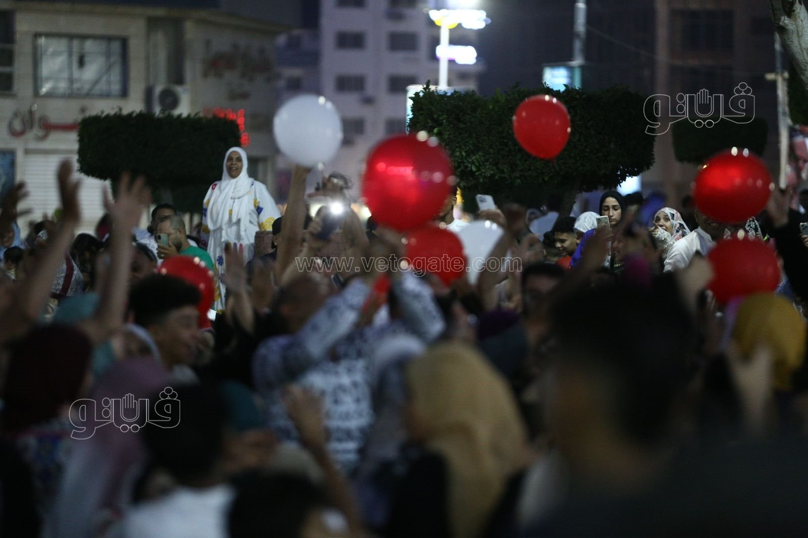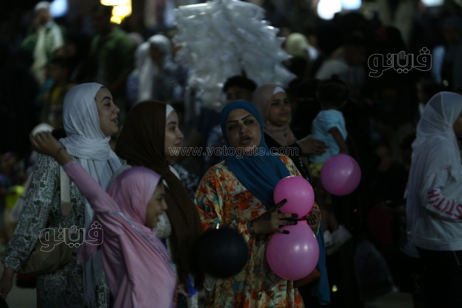 شلالات البلالين تسقط على المصلين احتفالًا بعيد الأضحى بساحة مصطفى محمود (فيديو)