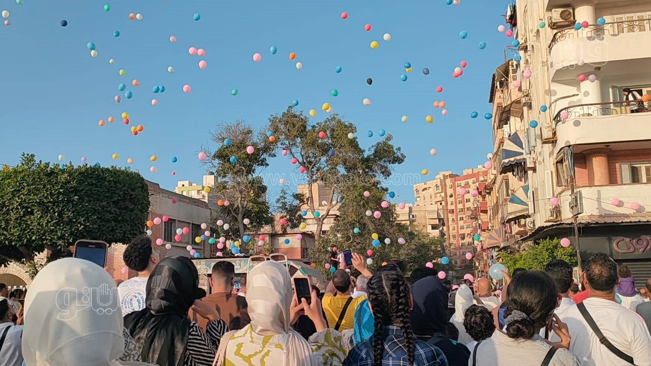 بألوان البهجة، سماء بورفؤاد تتزين بشلالات بالونات الفرحة بعد صلاة عيد الأضحى (صور)