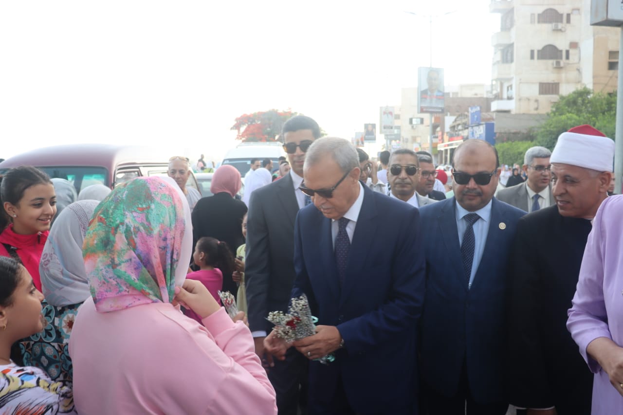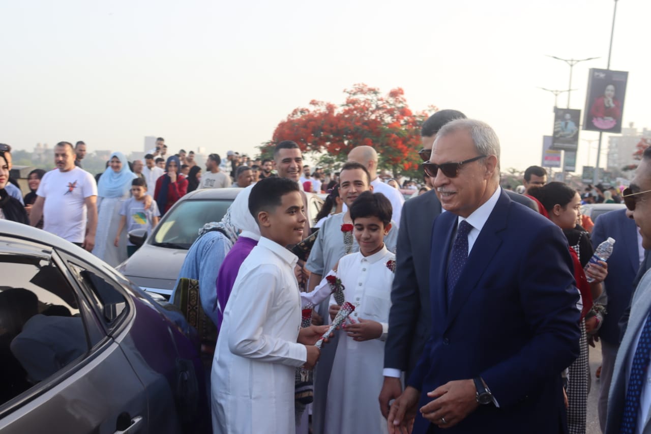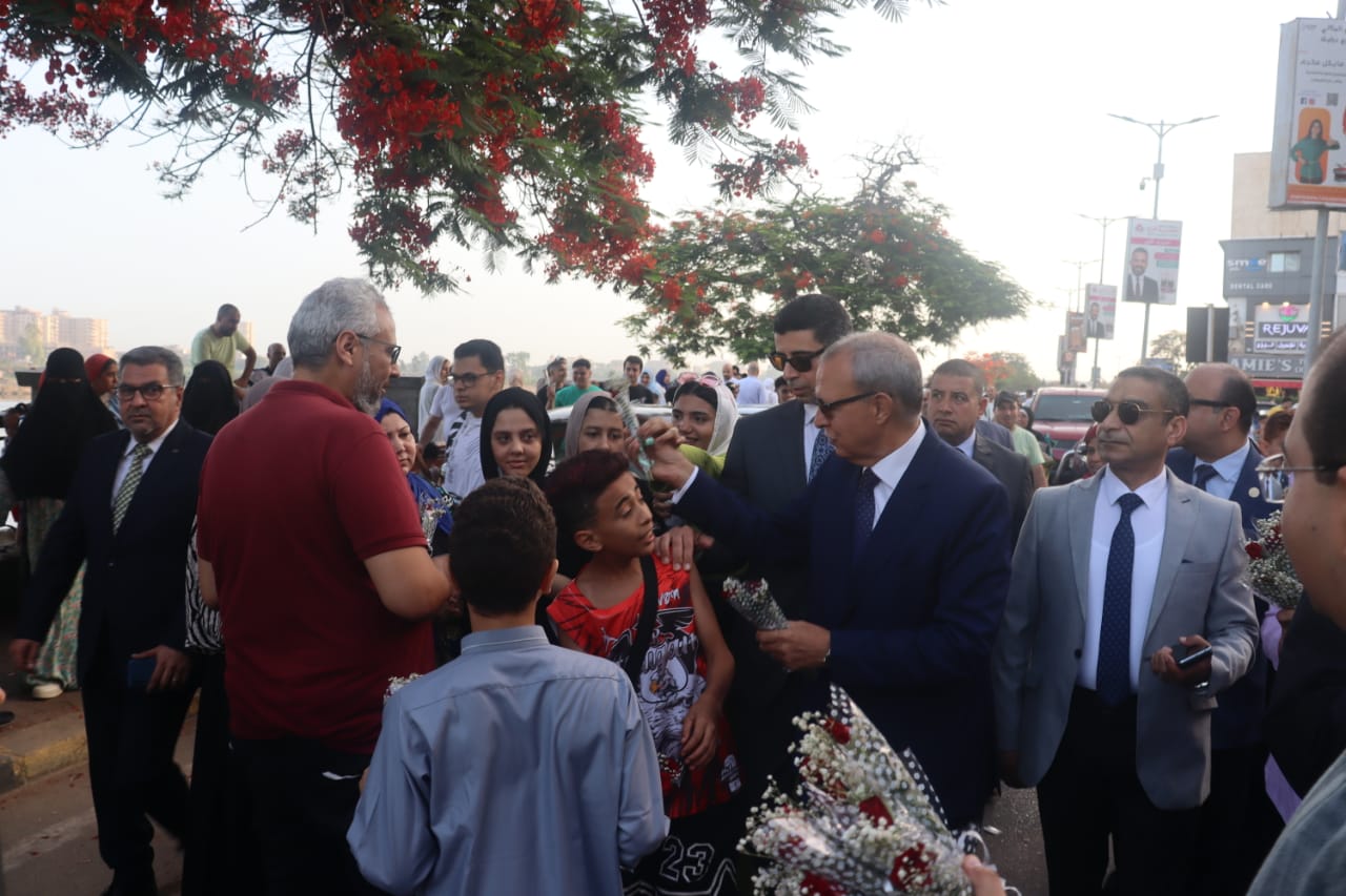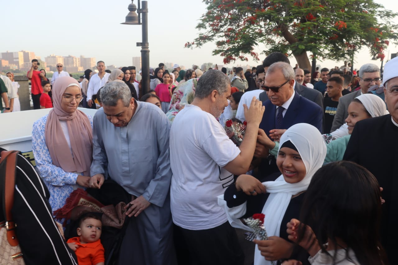محافظ القليوبية يوزع الورود على المواطنين احتفالا بعيد الأضحى (صور)