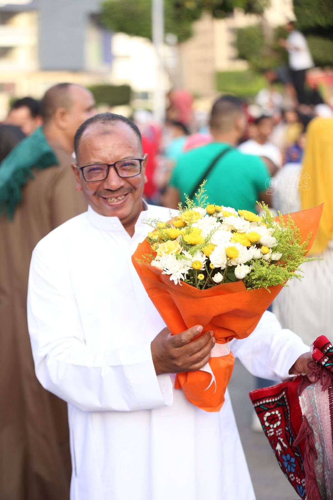 ورصدت عدسة فيتو احتفال المواطنين بالبلالين واللعب والضحكات العالية، فيما جذب أحد الأشخاص الأنظار بتواجده بعد صلاة العيد بباقة من الورود لإهدائها أحد أفراد أسرته احتفالا بالعيد.