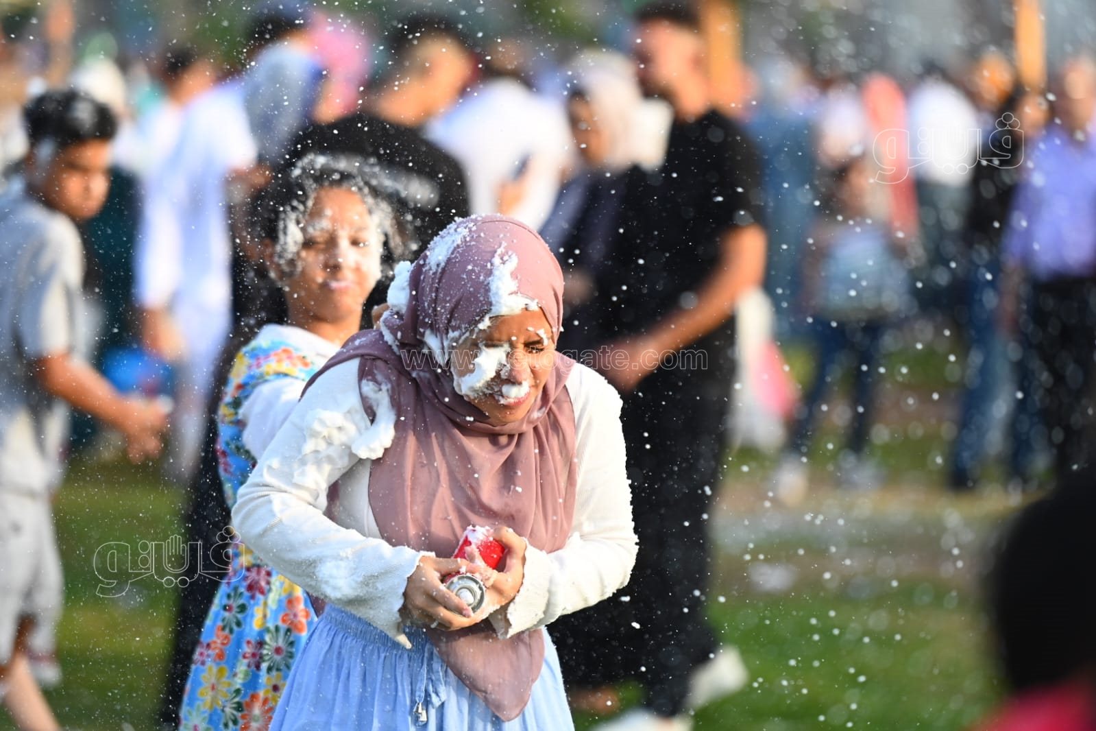 واحتفل المصلين مع أطفالهم وأصدقائهم بالعيد باللعب بالبلالين واللعب ب"بخاخ الثلج" والقاء الألعاب النارية، والتقاط صور السيلفي والتذكارية.