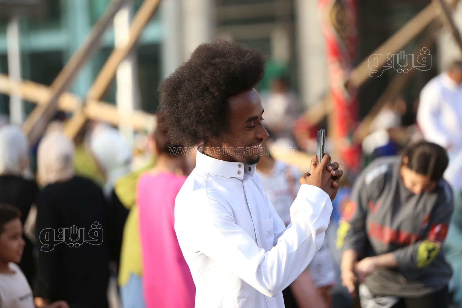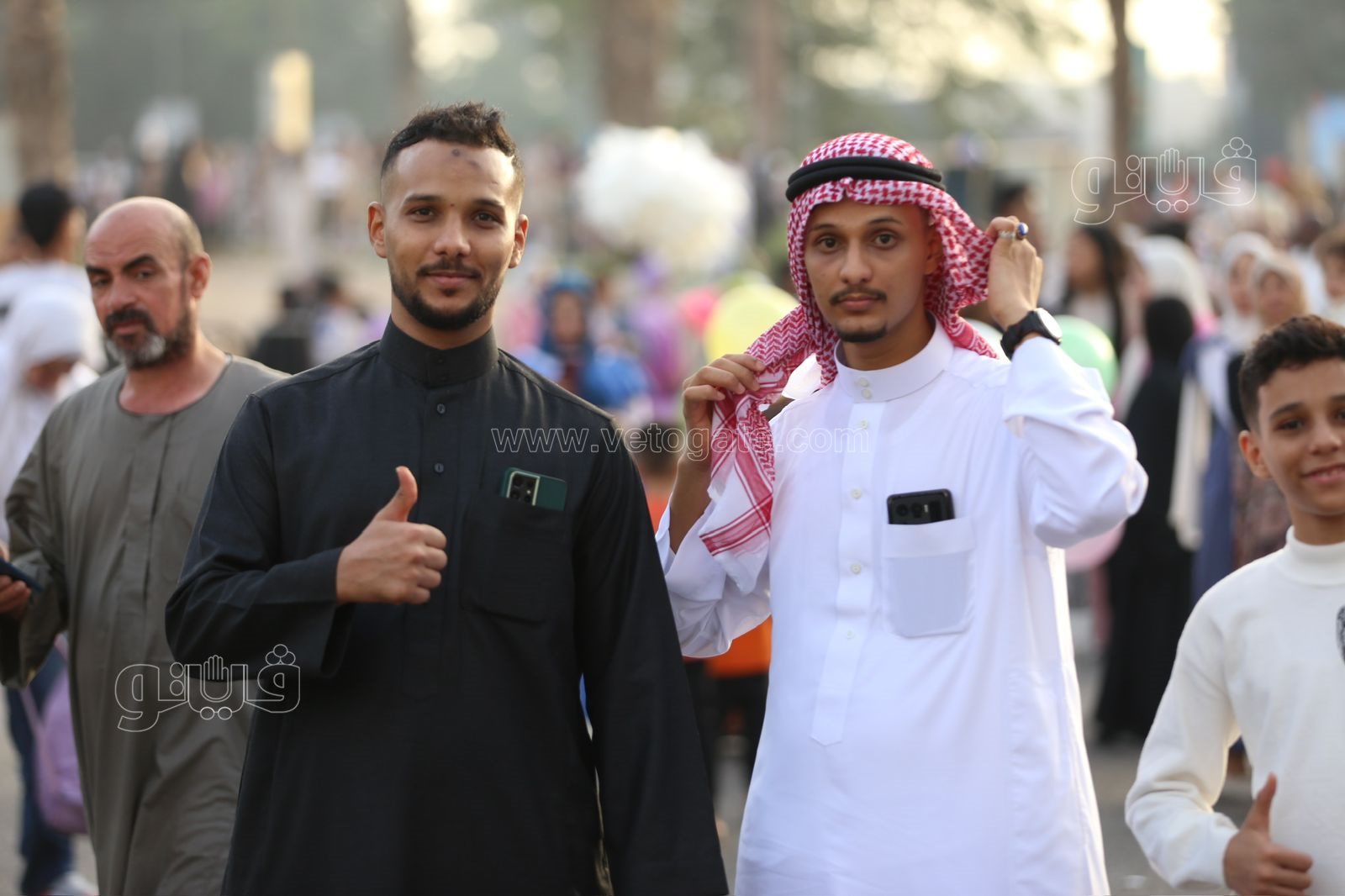 واحتفل المصلين مع أطفالهم وأصدقائهم بالعيد باللعب بالبلالين واللعب ب"بخاخ الثلج" والقاء الألعاب النارية، والتقاط صور السيلفي والتذكارية.