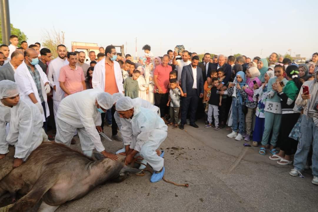 كما شهد محافظ الوادي الجديد والحضور، نحر الأضحية بساحة الحديقة، والتي سيتم توزيعها على الأسر الأكثر احتياجًا، وقدّم المحافظ التهنئة لجموع المواطنين بمناسبة العيد، راجيًا الله أن يعيده على الوطن الغالي مصر وعلى الأمة العربية بالخير والأمن والسلام.