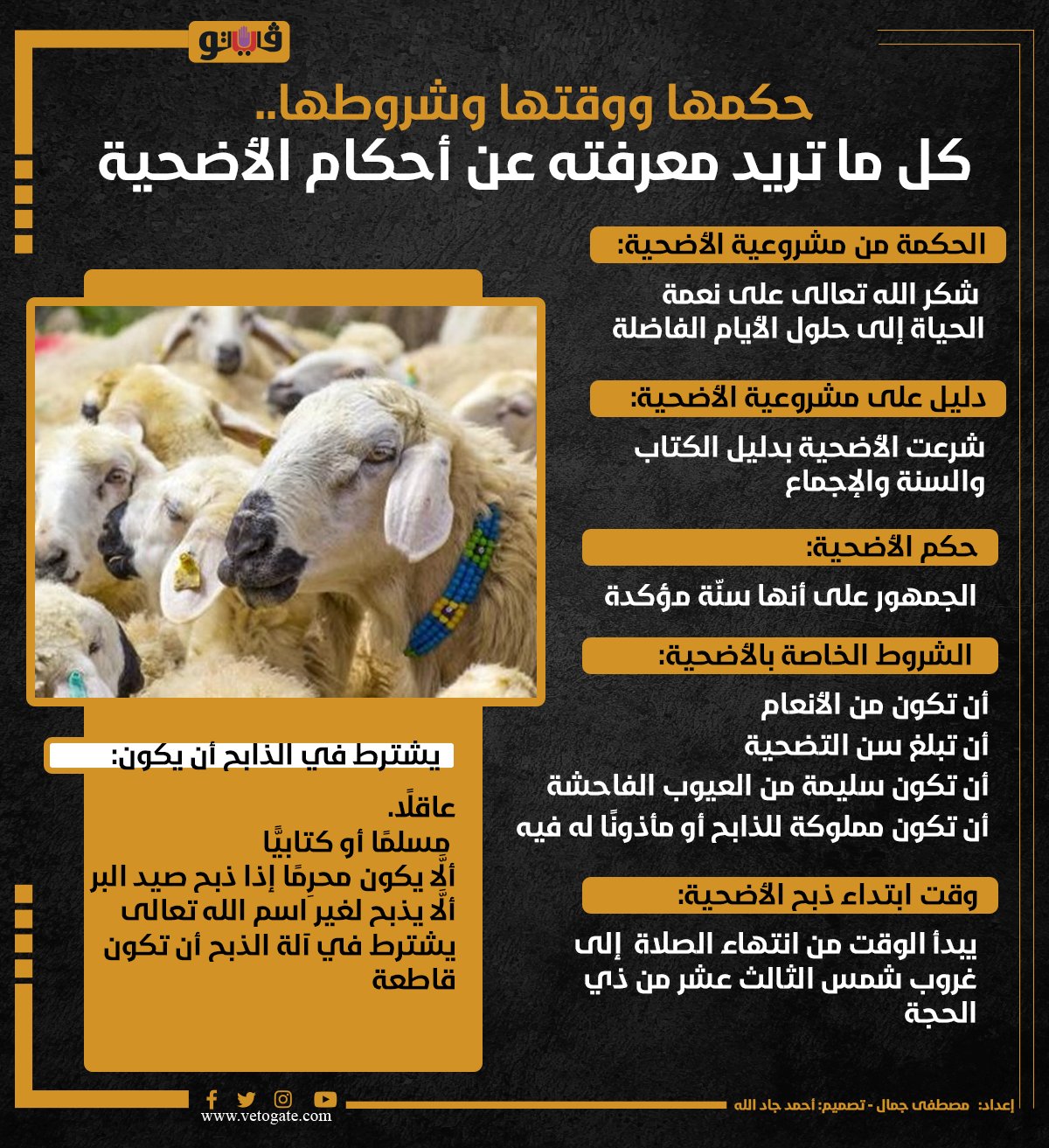 حكمها ووقتها وشروطها.. كل ما تريد معرفته عن أحكام الأضحية (إنفوجراف) الأحد 16/يونيو/2024 - 02:16 م 6/16/2024 2:16:09 PM أحكام الأضحية، فيتو مصطفى جمال شارك طباعة 18 حجم الخط شارك طباعة الحكمة من مشروعية الأضحية مشروعية الأضحية دليل على مشروعية الأضحية حكم الاضحية وقت ابتداء ذبح الأضحية أحكام الأضحية