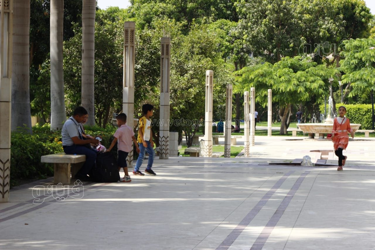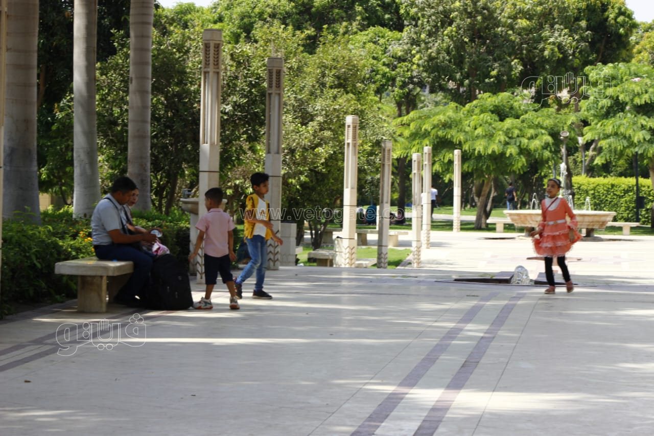 شهدت حديقة الأزهر إقبالًا من المواطنين في الساعات الأولى من صباح اليوم الأحد، للاحتفال بعيد الأضحي.