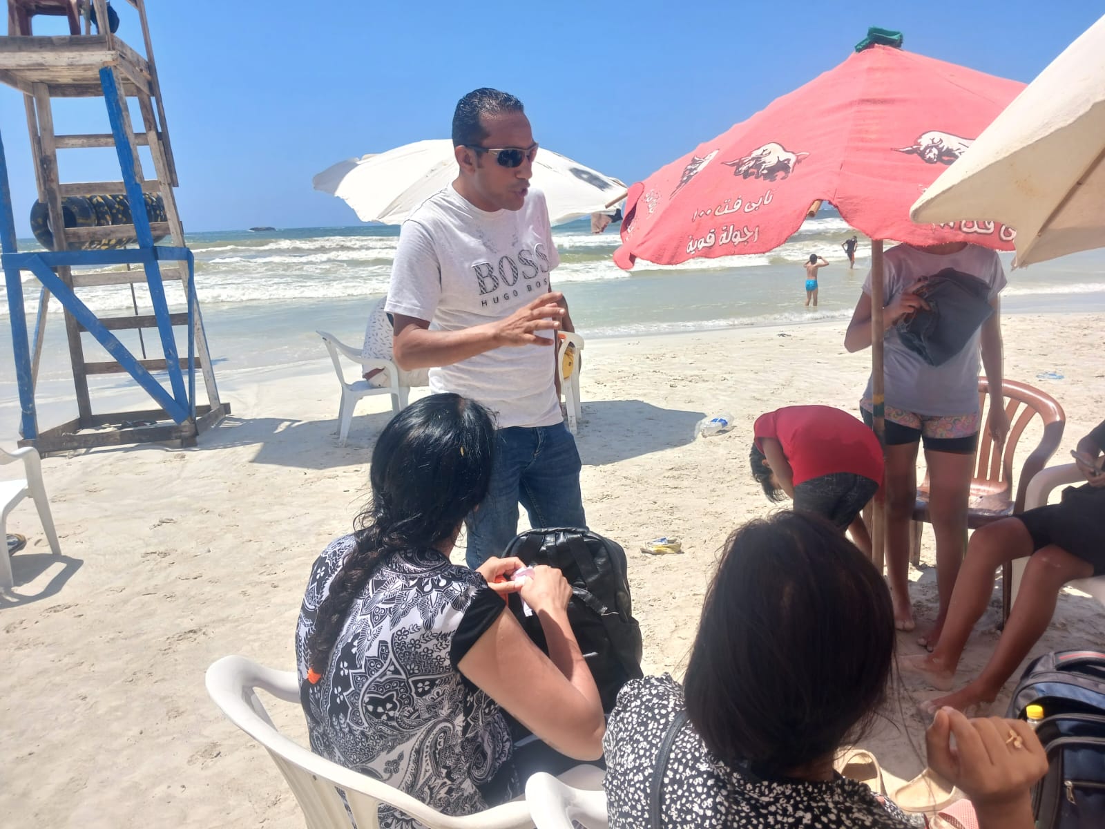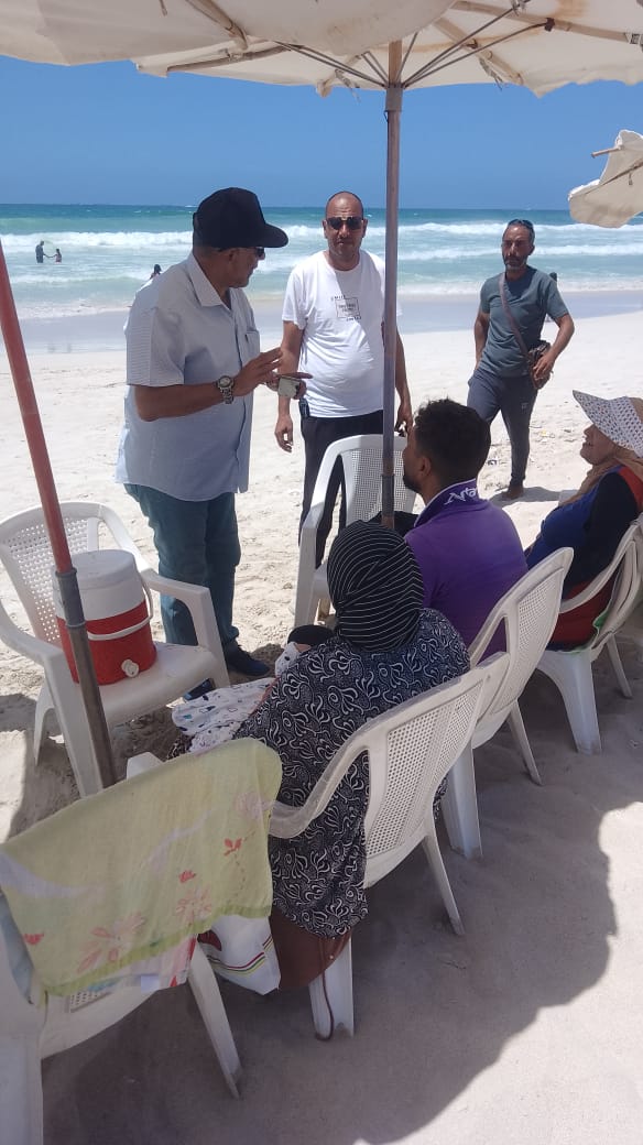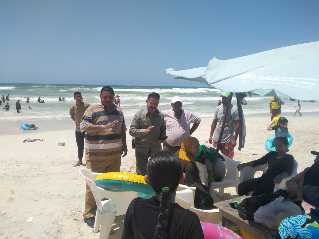 وقام رئيس الإدارة بنقل تحيات المحافظ بمناسبة عيد الاضحي للرواد وسؤالهم عما إذا تعرضوا لاى استغلال أو مشاكل تعكر عليهم يومهم علي الشواطئ كما تم التنبيه على المستأجرين بالتأكيد علي عمال الشاطئ بحسن معاملة الرواد وعدم استغلالهم.