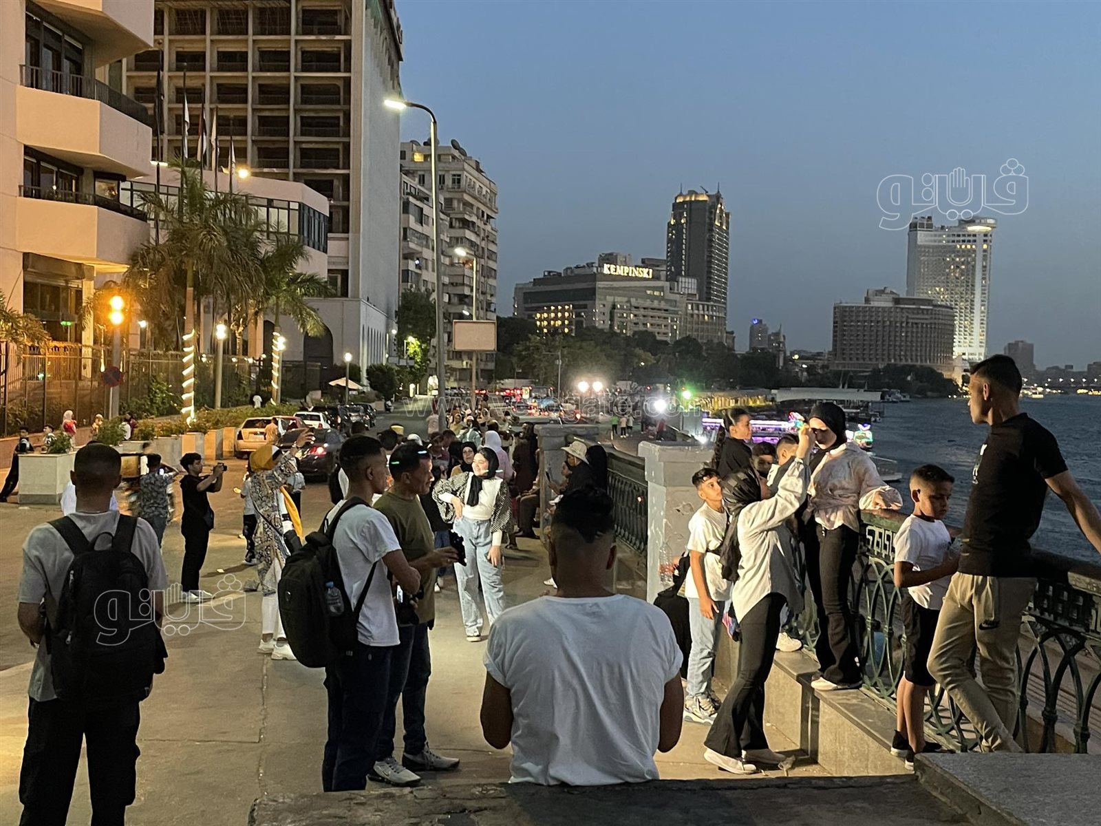 إقبال المواطنين على كورنيش النيل للاستمتاع بأجواء أول أيام العيد (صور)