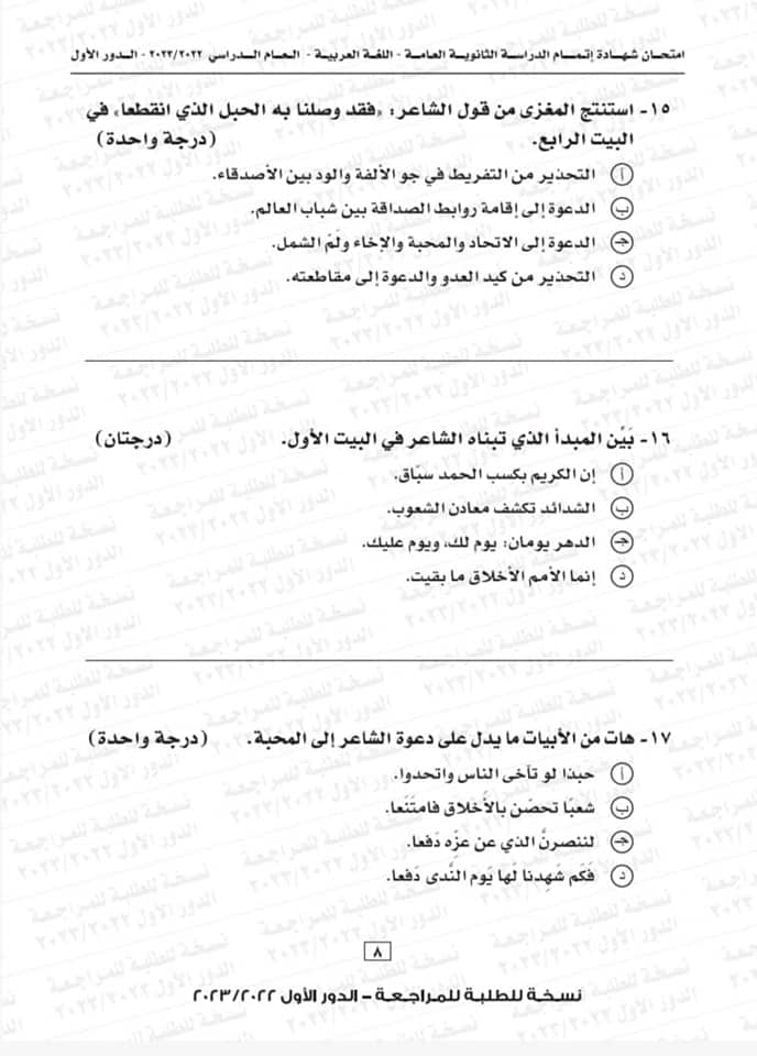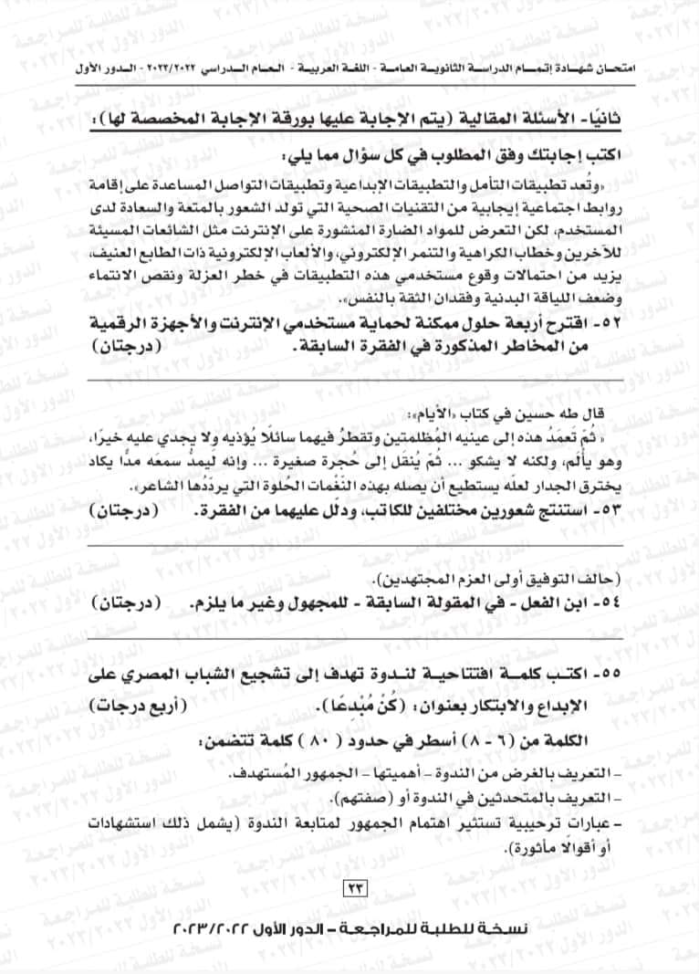 امتحانات الثانوية العامة السابقة pdf، ننشر امتحانات مادة اللغة العربية (صور)