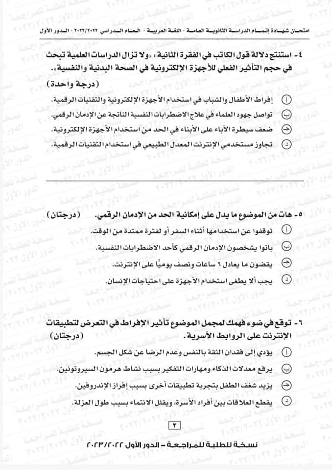 واستكمالا للخدمات التي تحرص بوابة فيتو على تقدميها لجميع طلاب الثانوية العامة 2024ننشر امتحان اللغة العربية للأعوام الماضية 2022 و2023 بالإجابات.