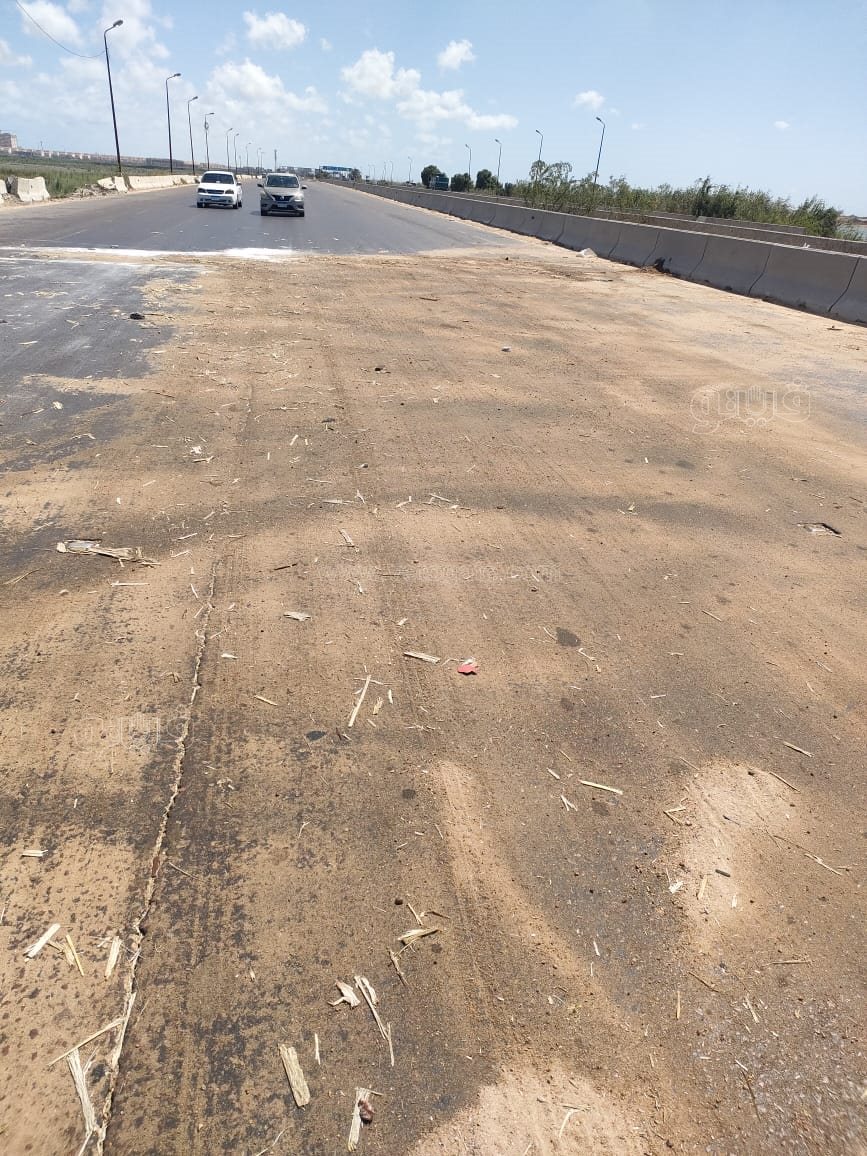 وجري تغطيه بقعه الزيت من قبل الحمايه المدنيه وفى حضور الكول الامنى لقسم شرطة محرم بك، وتسيير الحركة المرورية بالطريق بعد تعطلها.