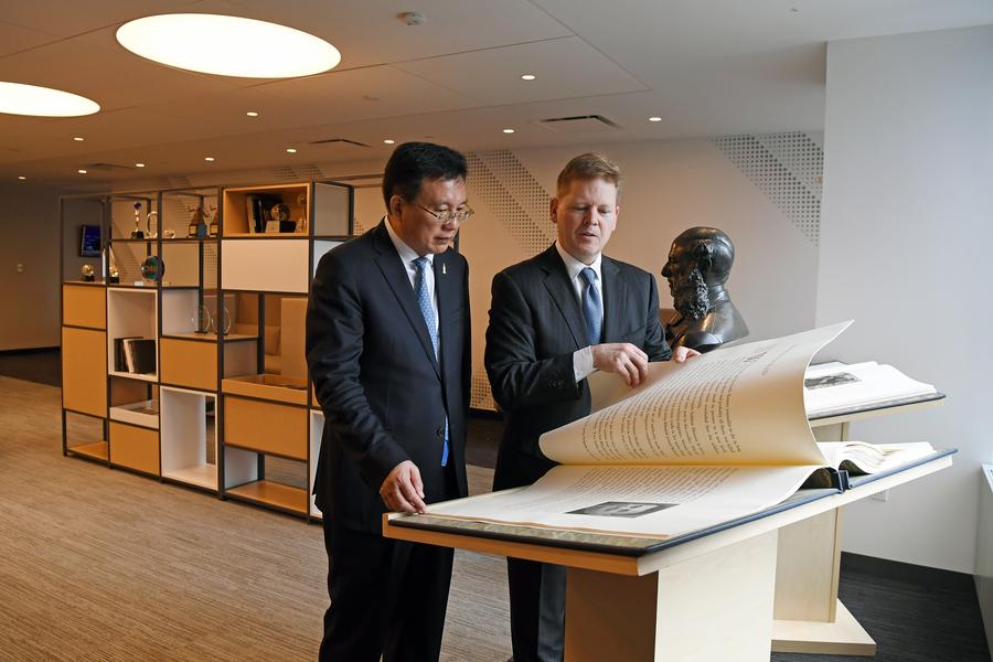 كما التقى رئيس وكالة أنباء شينخوا فو هوا، رئيس وكالة أنباء رويترز بول باسكوبرت، لبحث تعزيز التعاون والموضوعات ذات الاهتمام المشترك.