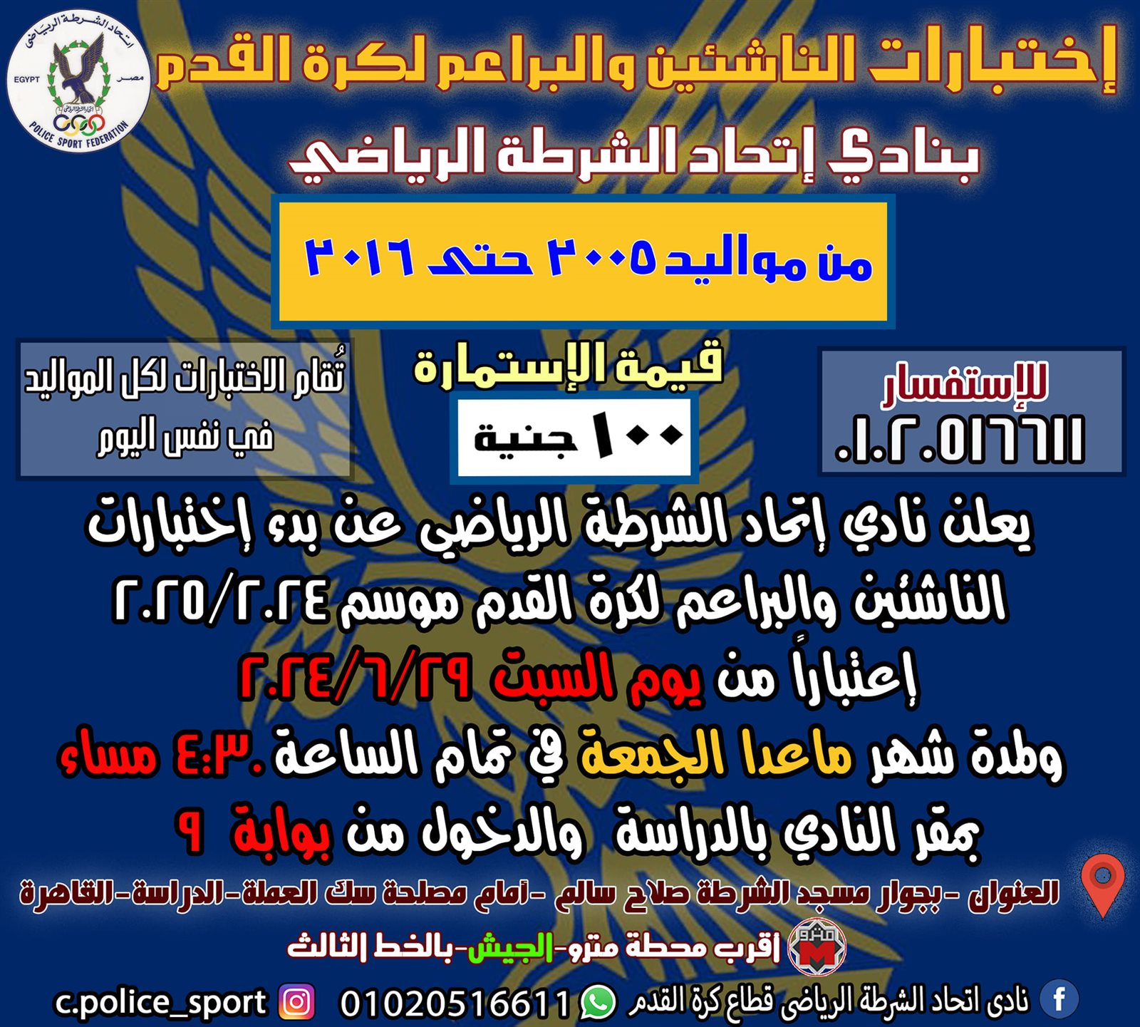 موعد اختبارات الناشئين 2024 بنادي الشرطة
