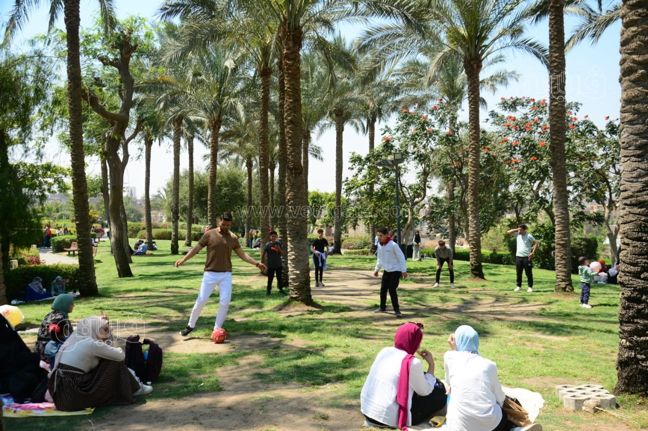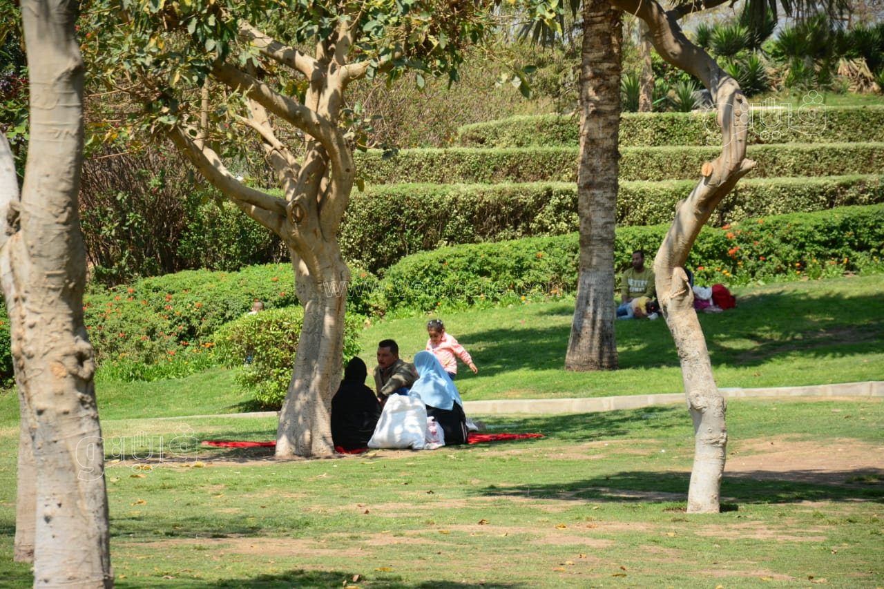 زوار حديقة الأزهر يهربون من أشعة الشمس الحارقة تحت الأشجار (صور)