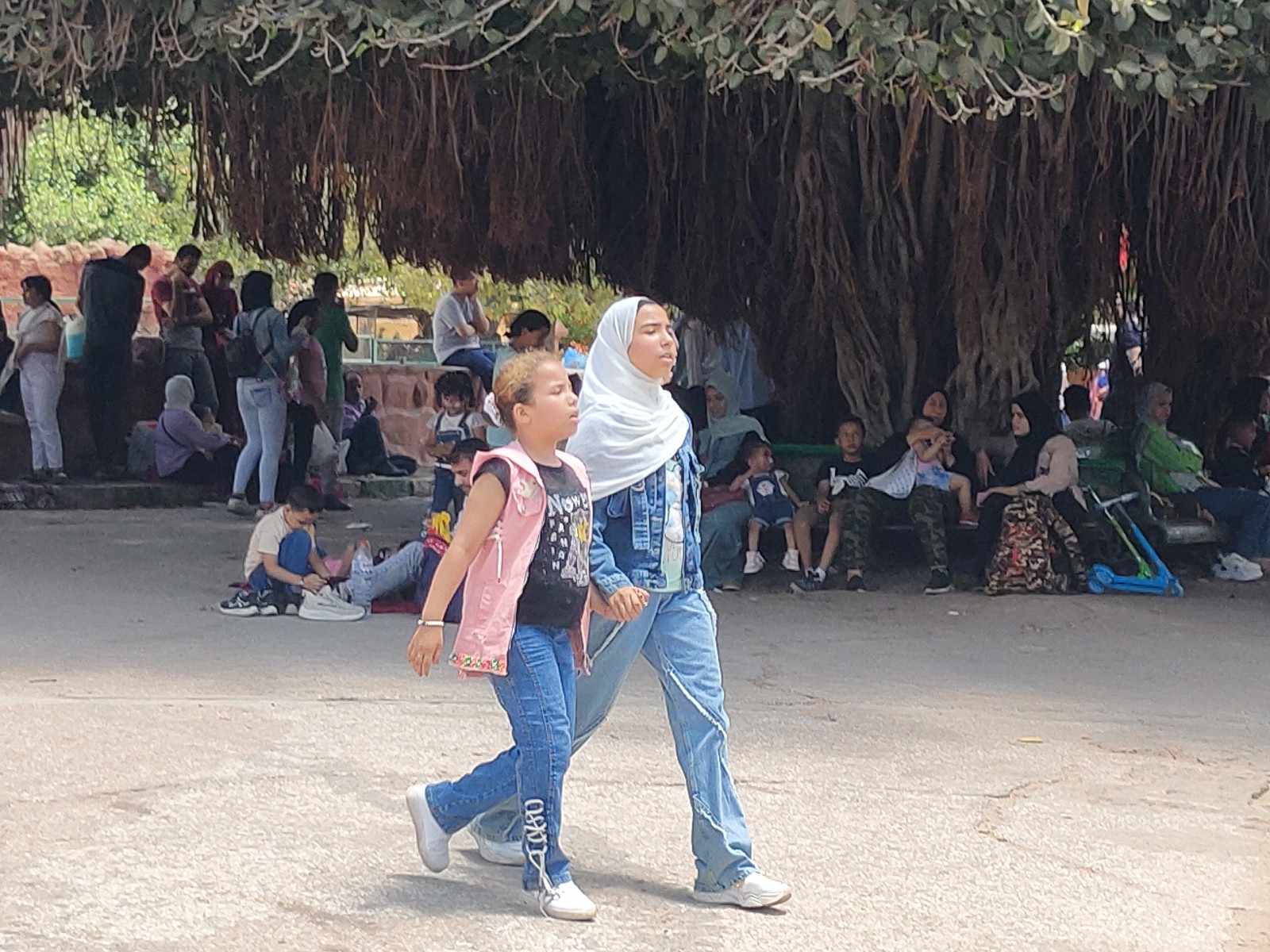 وحرصت الأسر مع أطفالهم على التجول بداخل الحديقة لمشاهدة الحيوانات والتقاط الصور التذكارية وتناول الأطعمة وسط أجواء احتفالية بأيام العيد.