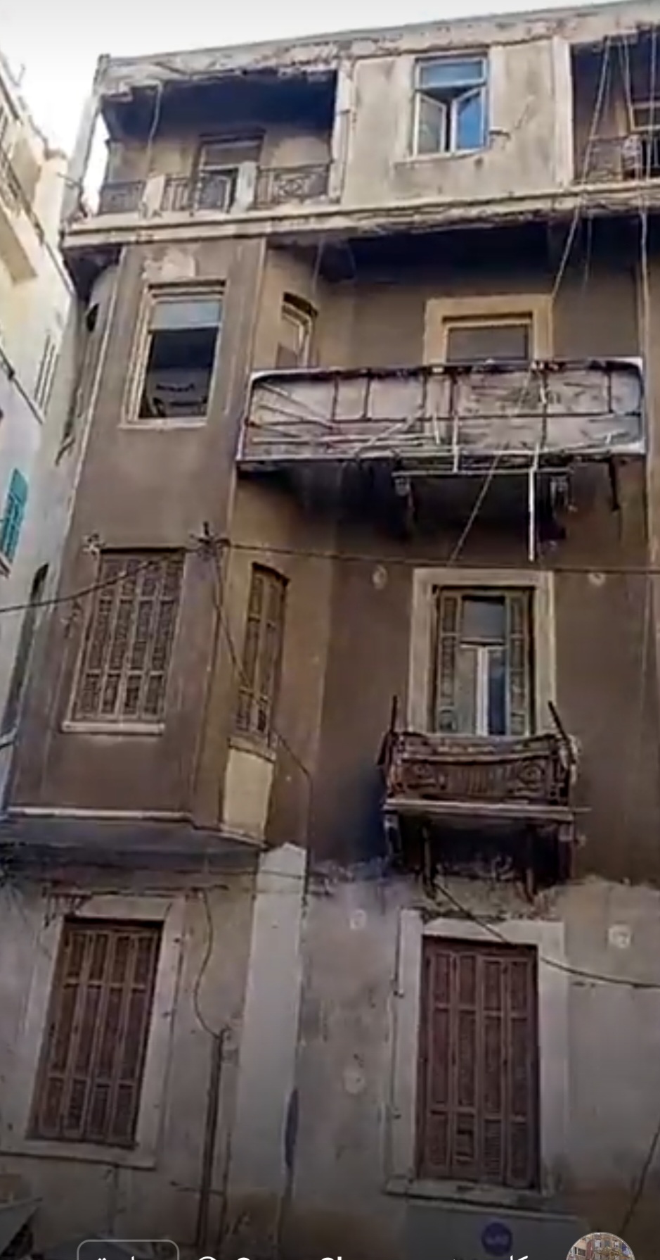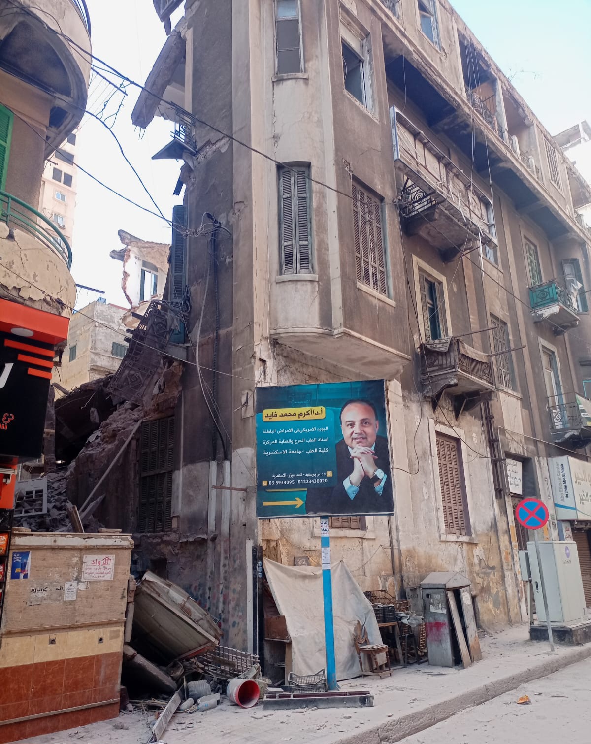 انهيار جزئي لعقار بوسط الإسكندرية (صور)