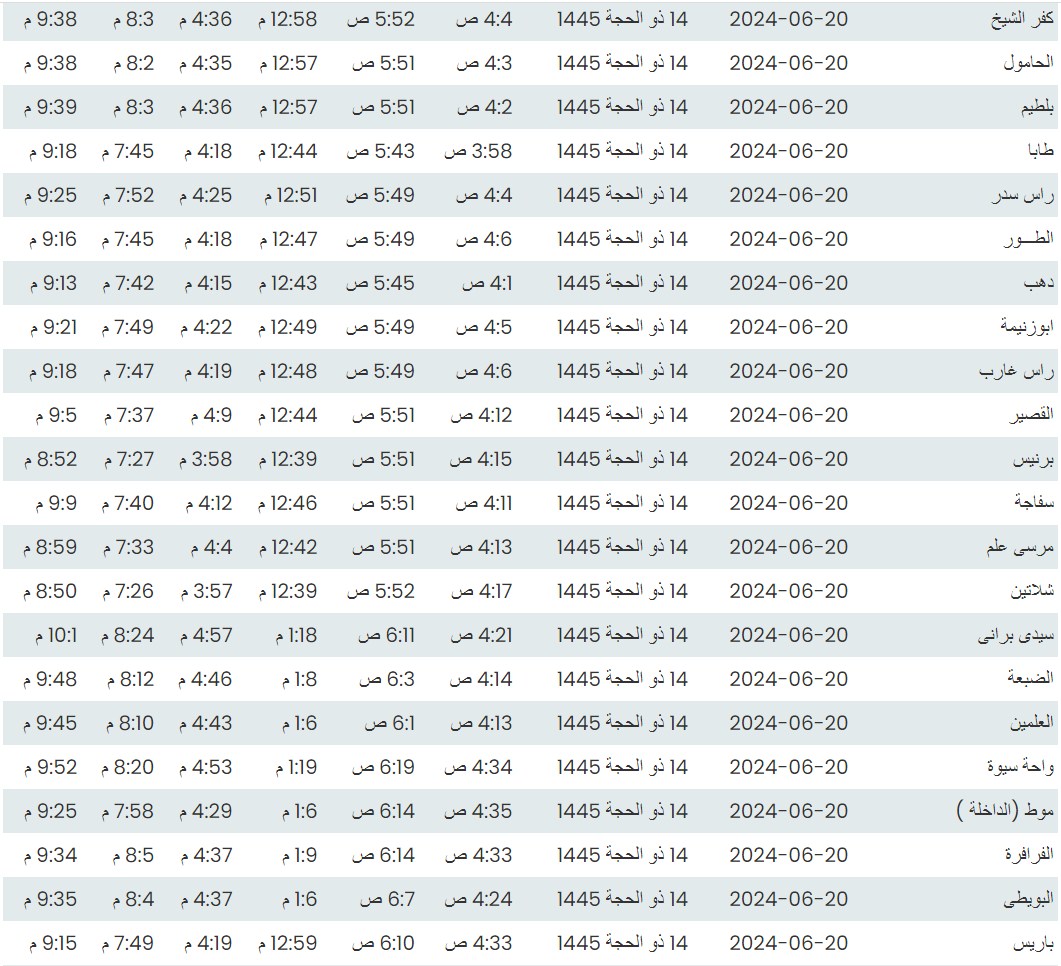 وفيما يلي مواقيت الصلاة، لعدد من مدن ومحافظات الجمهورية من واقع بيانات الهيئة العامة للمساحة
