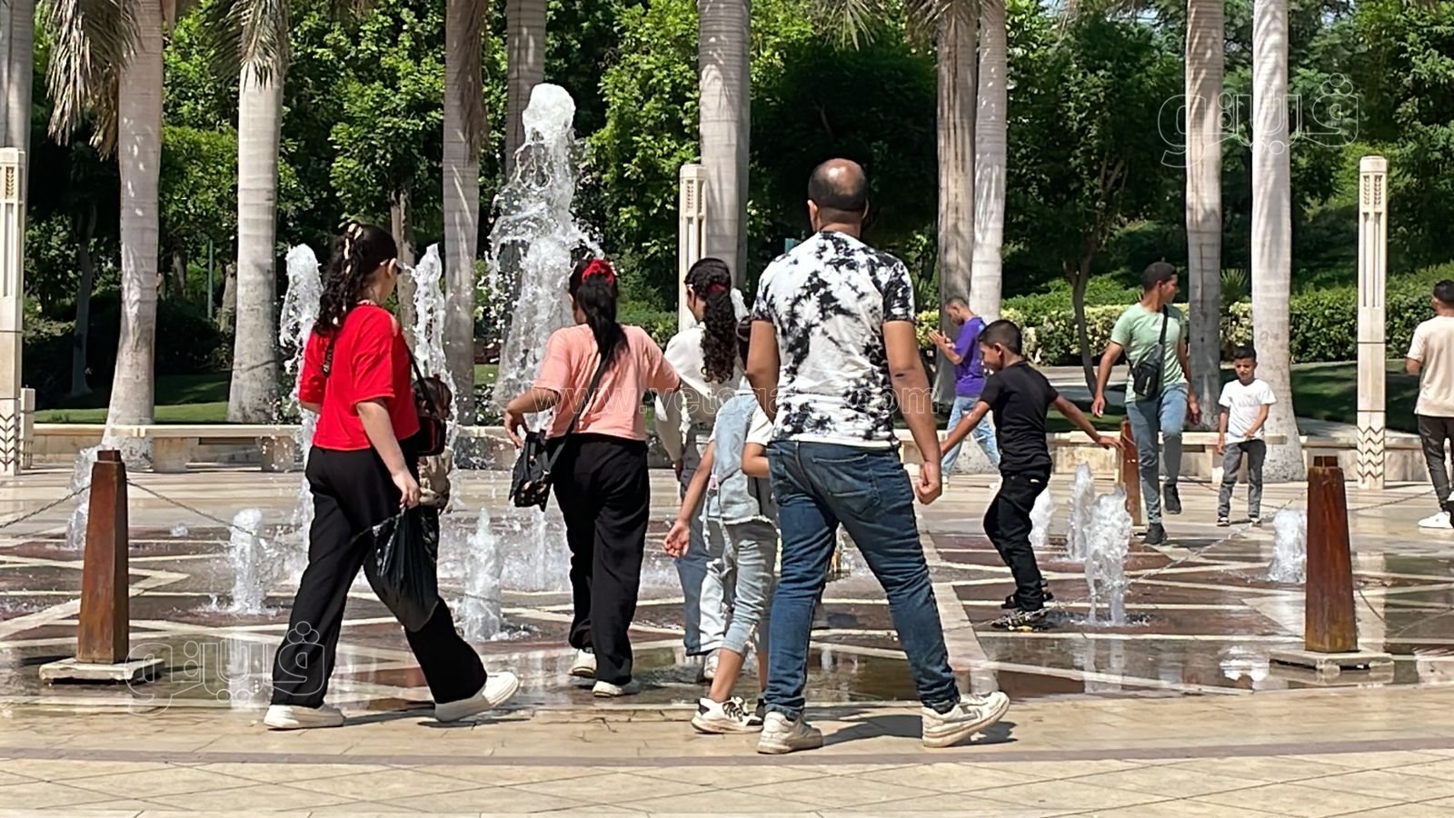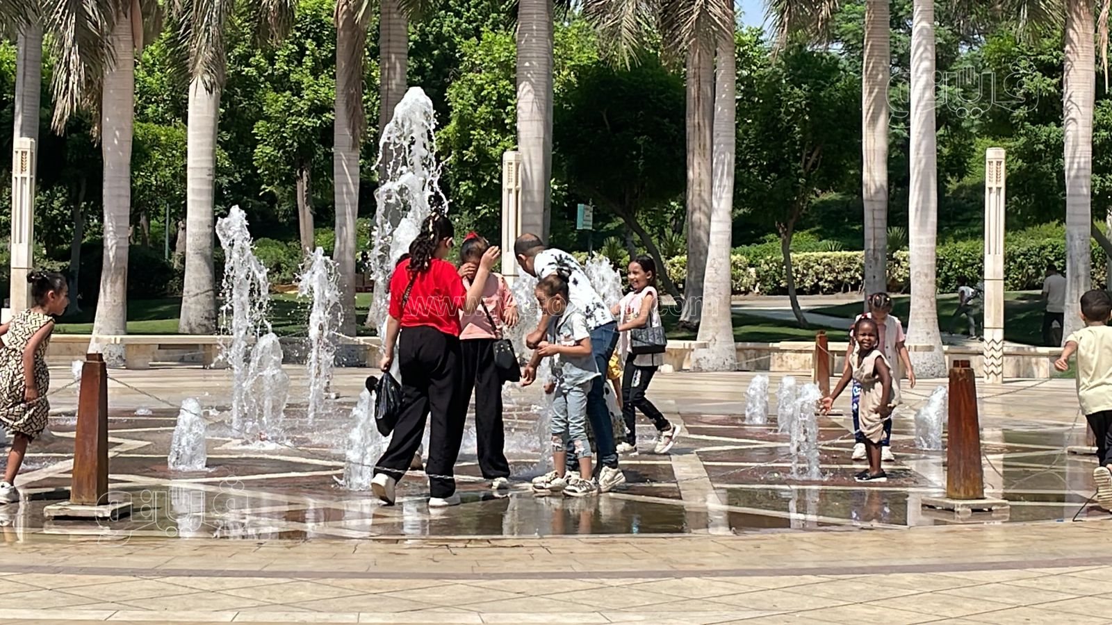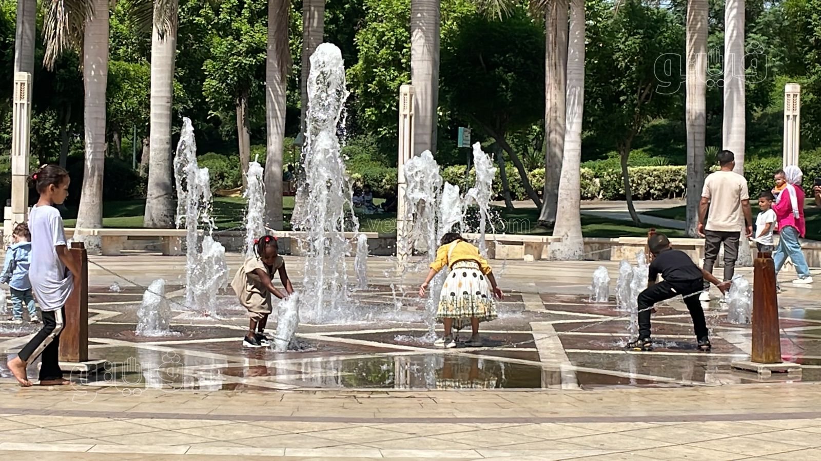 الأطفال يلعبون بمياه نافورة حديقة الأزهر في ثالث أيام العيد (فيديو وصور)