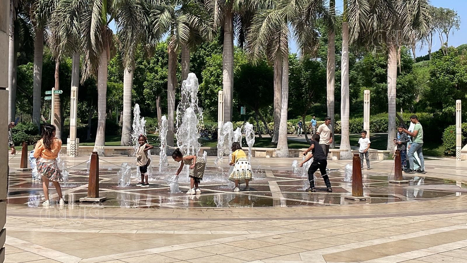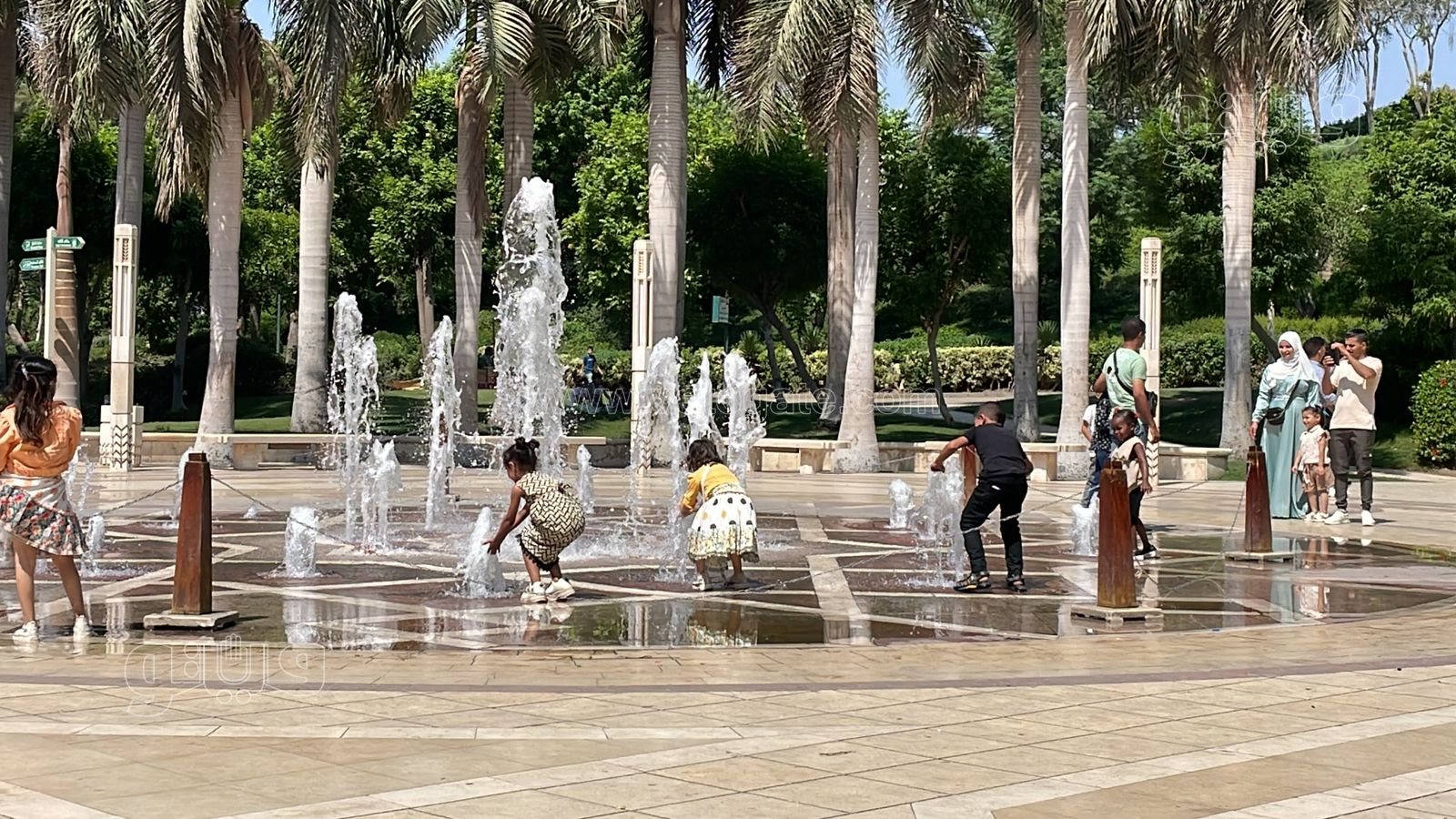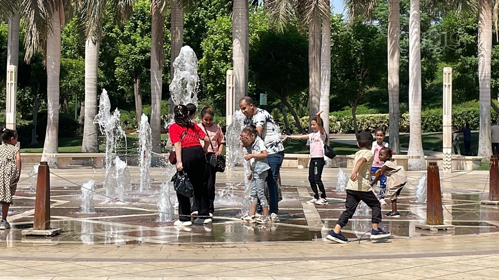 الأطفال يلعبون بمياه نافورة حديقة الأزهر في ثالث أيام العيد (فيديو وصور)