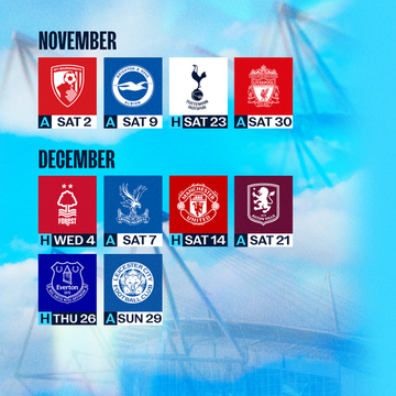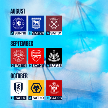 ويلعب مانشستر سيتي حامل لقب الدوري الانجليزي الممتاز في الموسم الماضي مبارياته على النحو التالي..