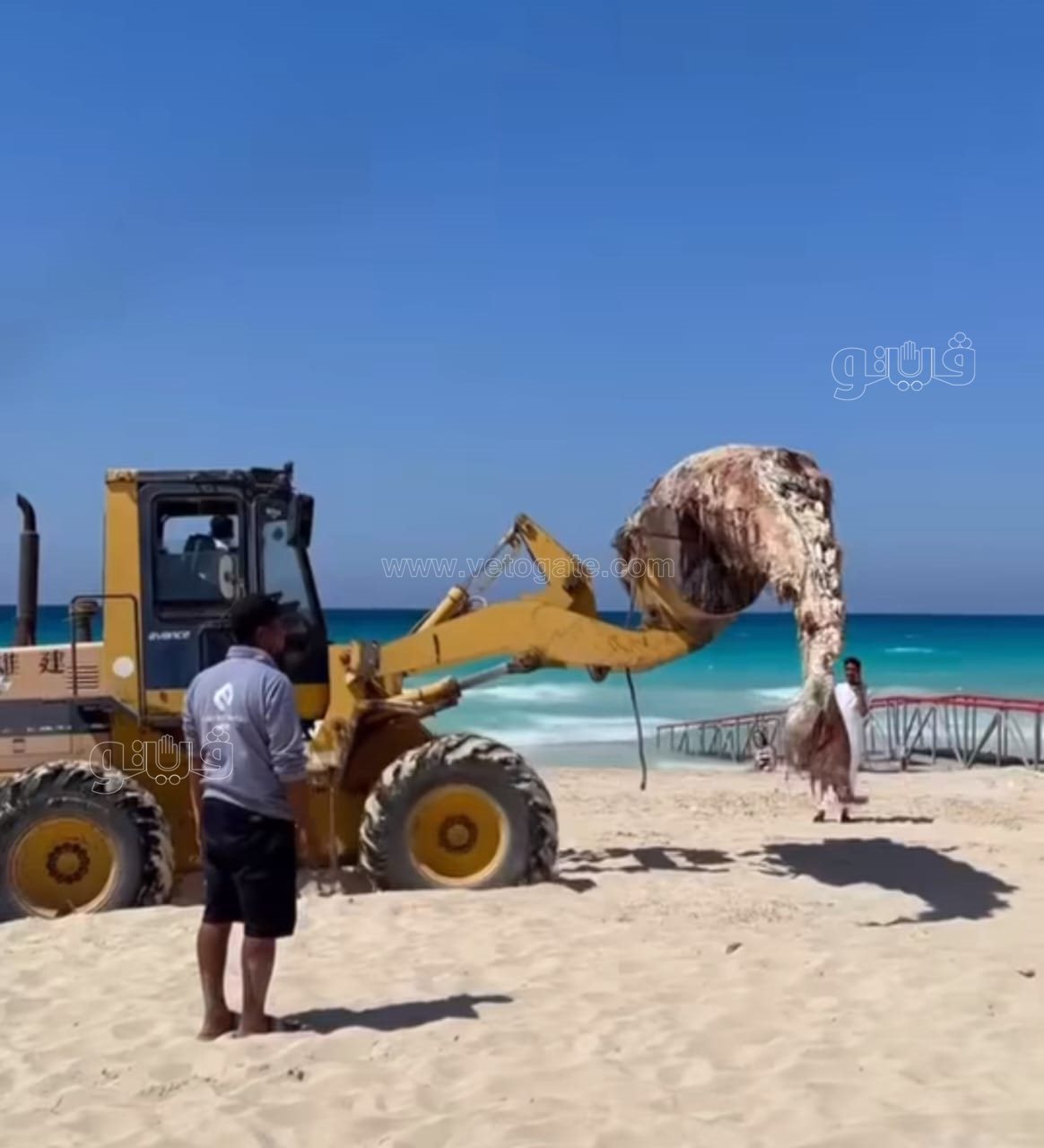 وتنشر "فيتو" أول صور من العثور على حوت نافق بالساحل الشمالي، وسط قيام المختصين بوزارة البيئة بنقله.