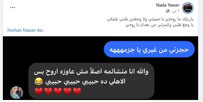 وكانت نورهان قد كتبت على حسابها الشخصي بموقع التواصل الاجتماعي “إنستجرام”: “راجعة من السفر مخصوص من المنوفية للقاهرة عشان رايحة ماتش الأهلي فى إسكندرية، 3 محافظات في يوم واحد عشان الأهلي”.