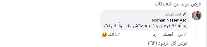 وكتبت الراحلة على حسابها بمنصة التواصل الاجتماعي، رسالة استياء من أداء لاعبي النادي الأهلي بالرغم من الفوز على الاتحاد بهدف مقابل لا شيء، قائلة: "والله ولا فرحان ولا نيلة ماتش زفت وأداء زفت".