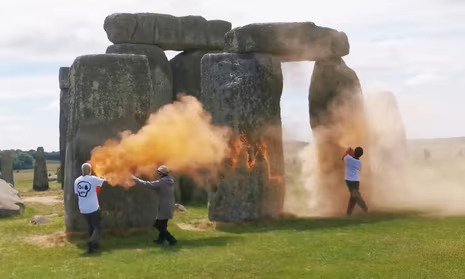 قام نشطاء "جاست ستوب أويل" المدافعون عن البيئة في بريطانيا، اليوم الأربعاء، برش طلاء برتقالي على معلم "ستونهنج" الأثري الذي يعود إلى عصر ما قبل التاريخ.