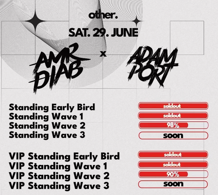 وأعلنت الشركة المنظمة كذلك أن تذاكر الحفل على وشك النفاذ، حيث قاموا بنشر هذه الصورة على صفحتهم الرسمية على موقع التواصل الاجتماعي “انستجرام” أنه لم يتبقى من التذاكر إلا 10% من الفئة الـ (VIP) الأولى و2% من الفئة الثالثة.