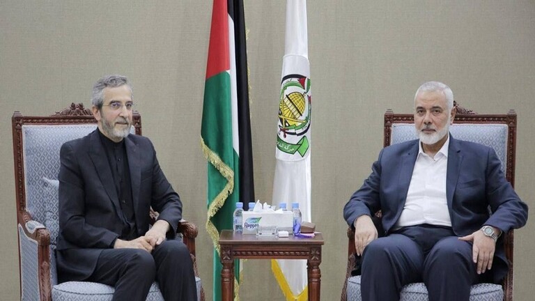 بحث رئيس المكتب السياسي لحركة حماس إسماعيل هنية مع وزير خارجية إيران علي باقري كني والوفد المرافق له التطورات في قطاع غزة والقضية الفلسطينية وجهود وقف الحرب الإسرائيلية.
