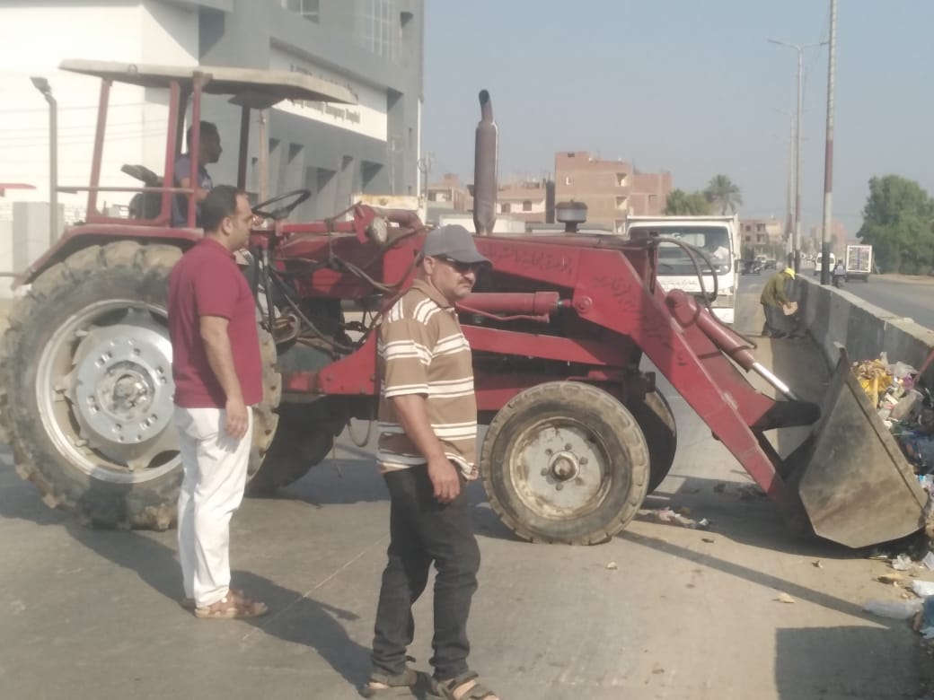 رئيس مدينة الزقازيق يتابع أعمال النظافة والتطهير بطريق الشوبك