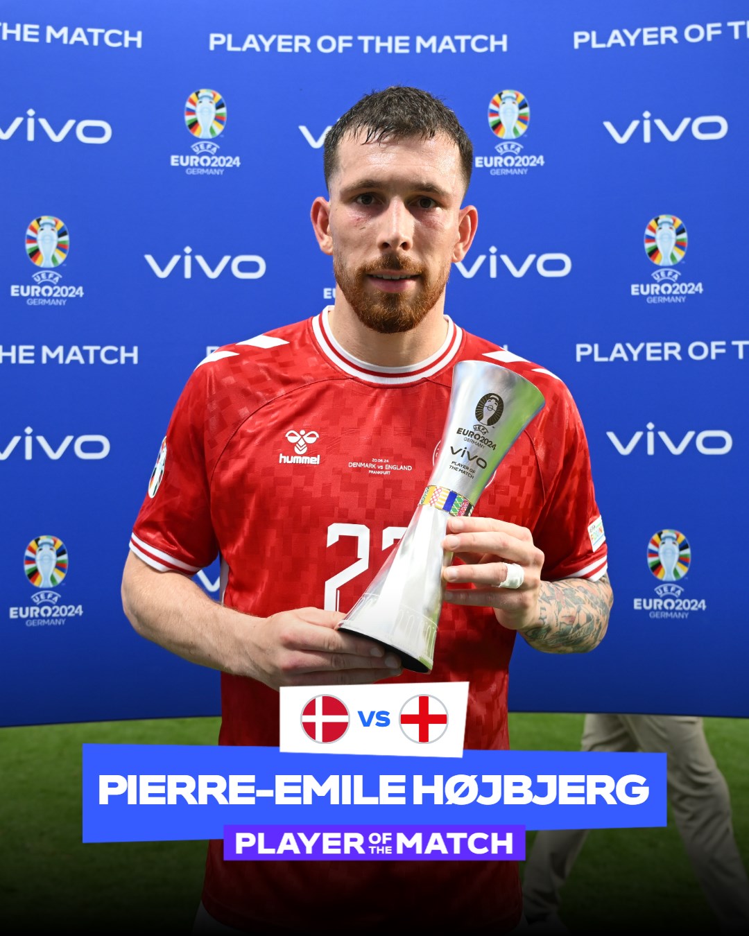 حصد إيميل هويبيرج نجم منتخب الدنمارك، جائزة رجل مباراة بلاده أمام إنجلترا، والتي جرت اليوم الخميس، في الجولة الثانية من دور المجموعات لبطولة كأس أمم أوروبا - يورو 2024، وانتهت بالتعادل 1/1.