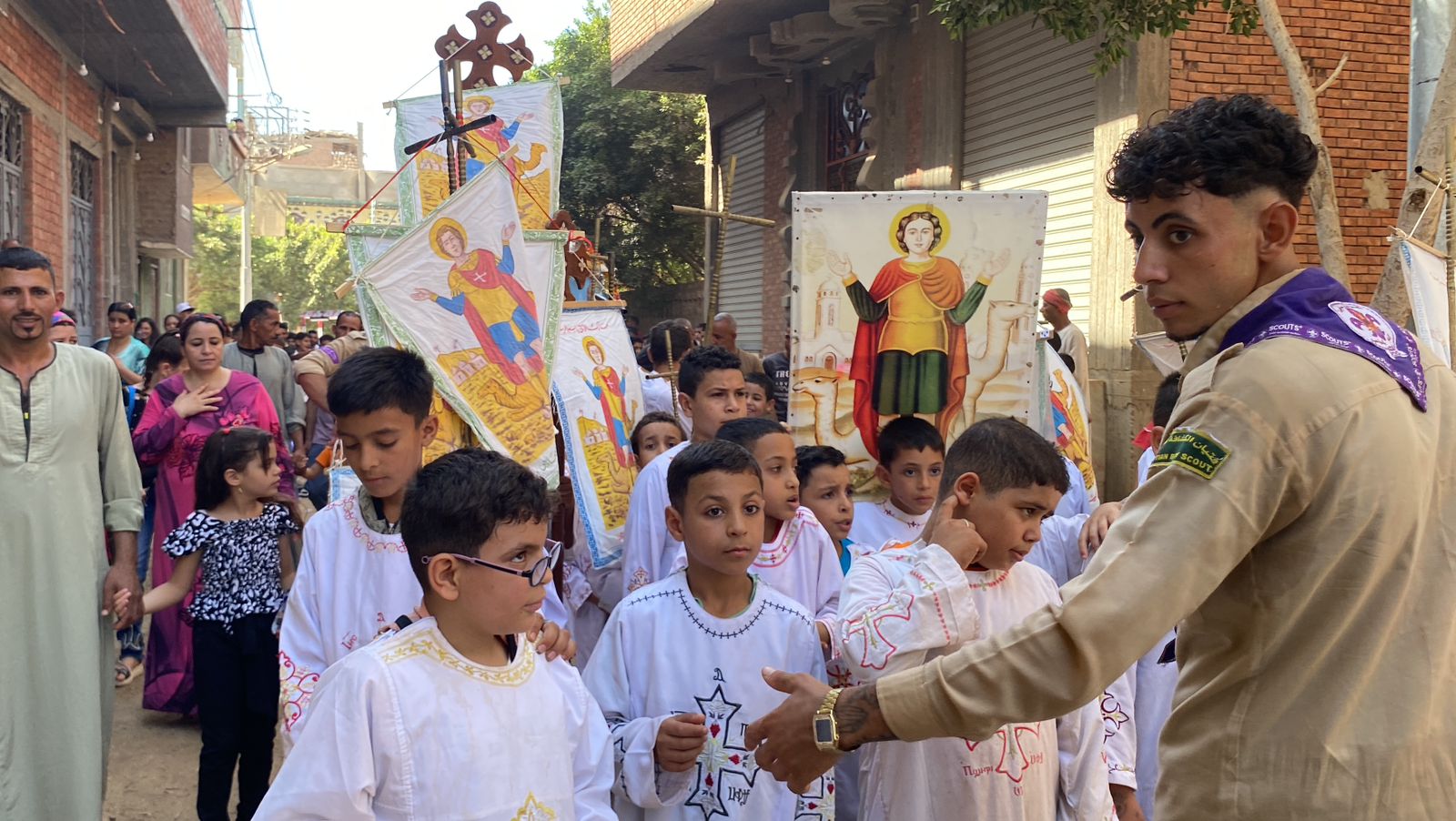 وقدّم أحد الشباب دور مارمينا، حيث ارتدى ملابس تاريخية وجاب القرية على حصان، وسط موكب من الأطفال الذين نثروا الورود، معبرين عن احترامهم وتقديرهم للقديس الشهيد.
