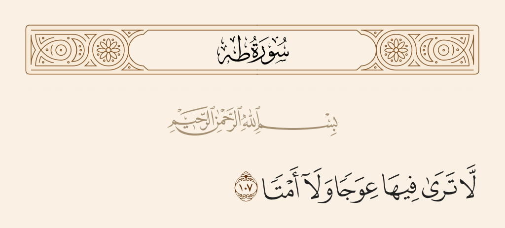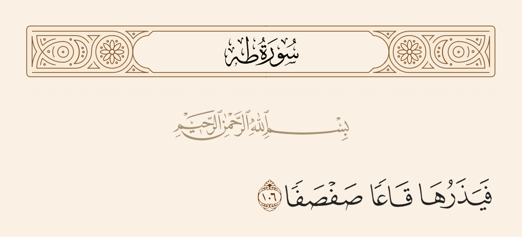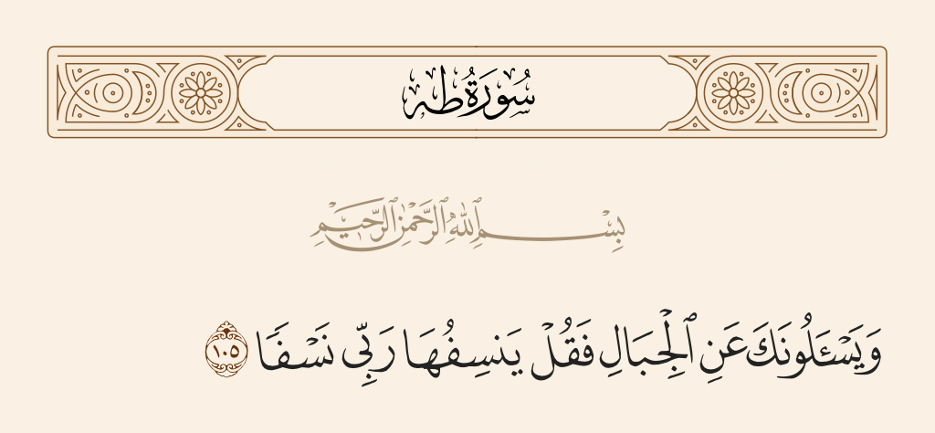 قال تعالى: «وَيَسْئَلُونَكَ عَنِ الْجِبالِ فَقُلْ يَنْسِفُها رَبِّي نَسْفًا (١٠٥) فَيَذَرُها قاعًا صَفْصَفًا (١٠٦) لا تَرى فِيها عِوَجًا وَلا أَمْتًا (١٠٧)».