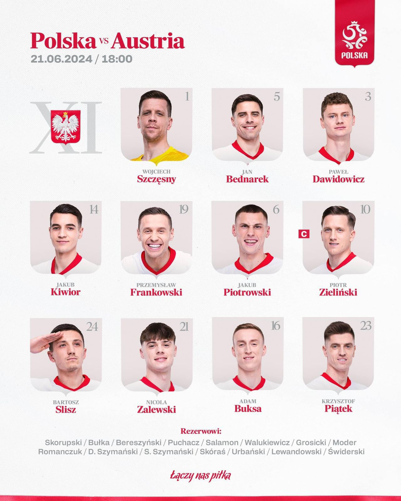 أعلن ميكال بروبييرز مدرب منتخب بولندا عن تشكيل فريقه الرسمي أمام النمسا، في المباراة التي تجمع بينهما علي ملعب الأولمبي ببرلين، ضمن مواجهات الجولة الثانية للمجموعة الرابعة لبطولة كأس أمم أوروبا يورو 2024.