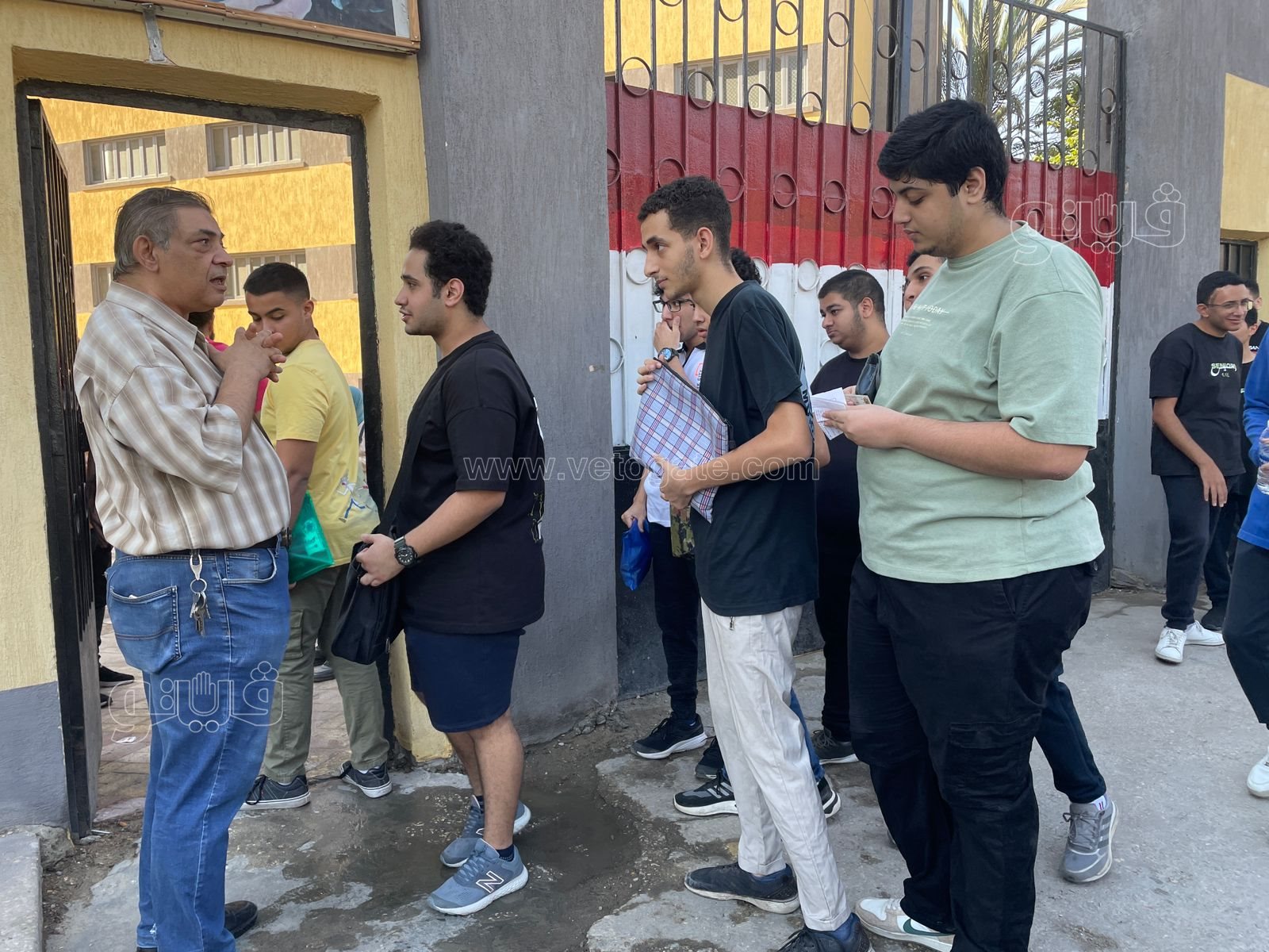 تفتيش طلاب الثانوية العامة بالعصا الإلكترونية قبل دخول اللجان