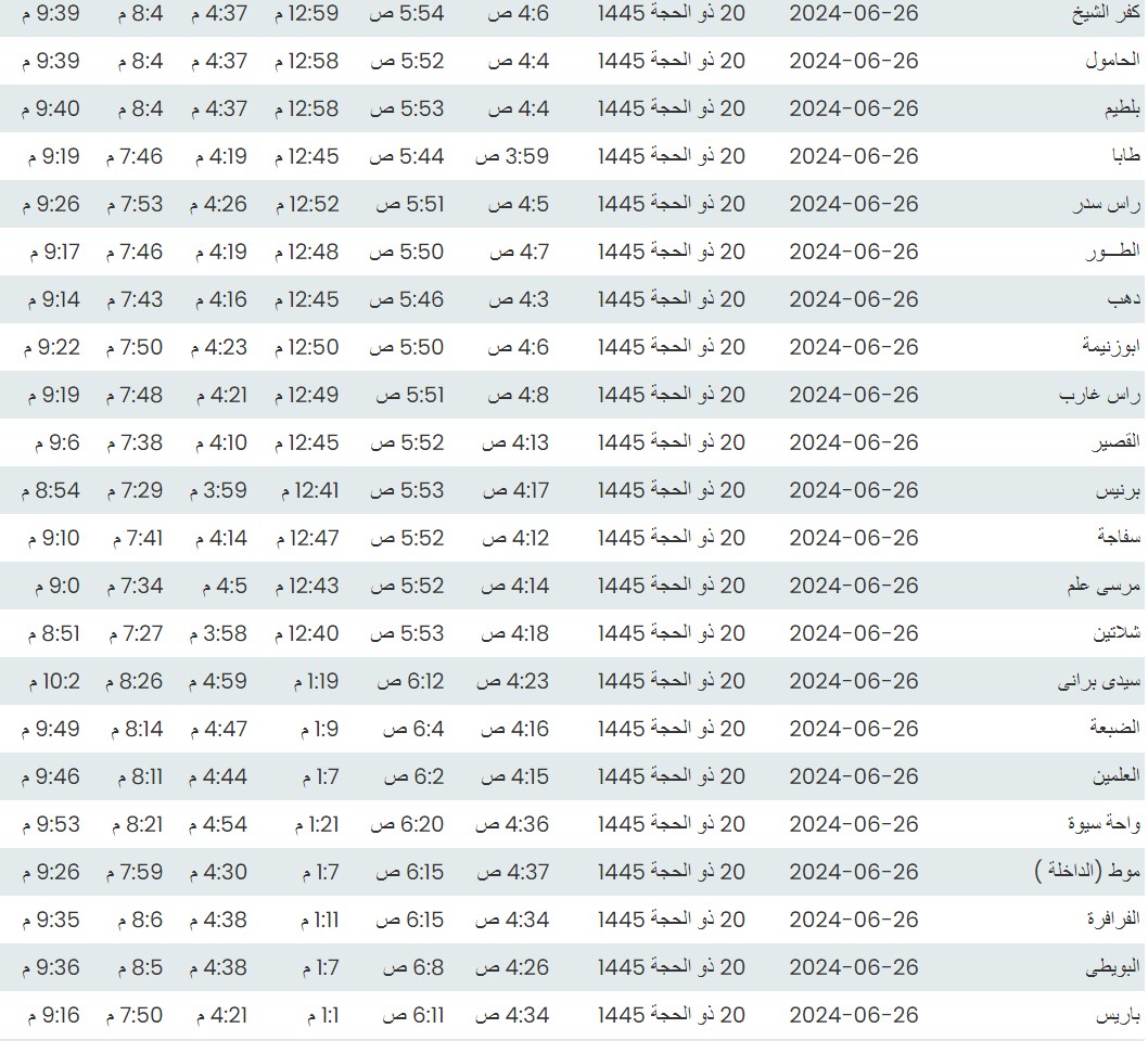 مواقيت الصلاة اليوم بتوقيت أسوان