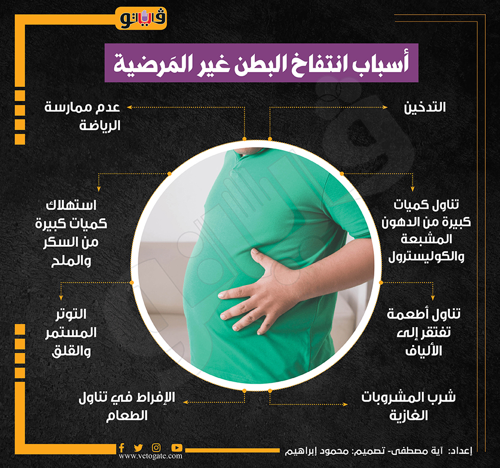 أسباب انتفاخ البطن غير المَرضية (إنفوجراف) الثلاثاء 06/أغسطس/2024 - 11:00 ص 8/6/2024 11:00:25 AM انتفاخ البطن، فيتو آية مصطفى شارك طباعة 18 حجم الخط شارك طباعة أسباب انتفاخ البطن الإفراط في تناول الطعام التوتر المستمر الدهون المشبعة المشروبات الغازية