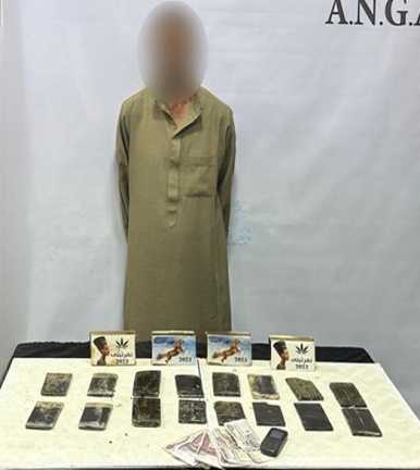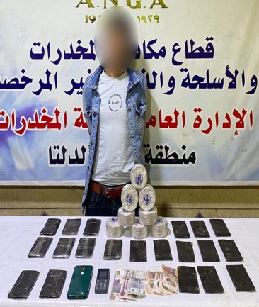 وجرى ضبط (مبلغ مالى - فرد خرطوش وطلقتان – 61 هاتف محمول – 4 سيارات – 5 دراجات نارية – 24 قطعة سلاح أبيض- 2 ميزان حساس).