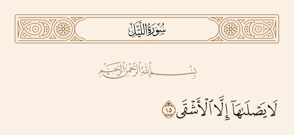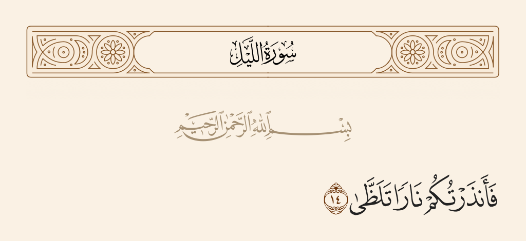 قال تعالى: «فَأَنْذَرْتُكُمْ نارًا تَلَظَّى (١٤) لا يَصْلاها إِلاَّ الْأَشْقَى (١٥) الَّذِي كَذَّبَ وَتَوَلَّى (١٦) وَسَيُجَنَّبُهَا الْأَتْقَى (١٧)».