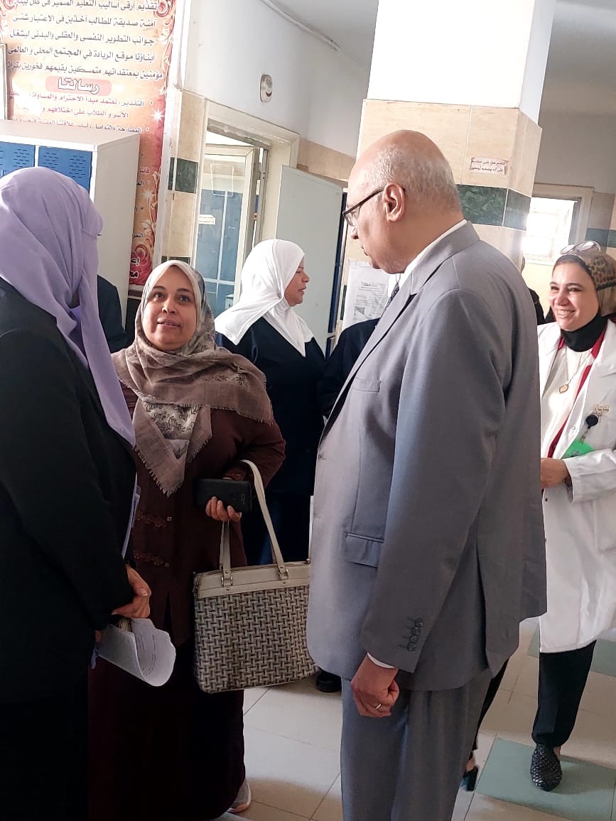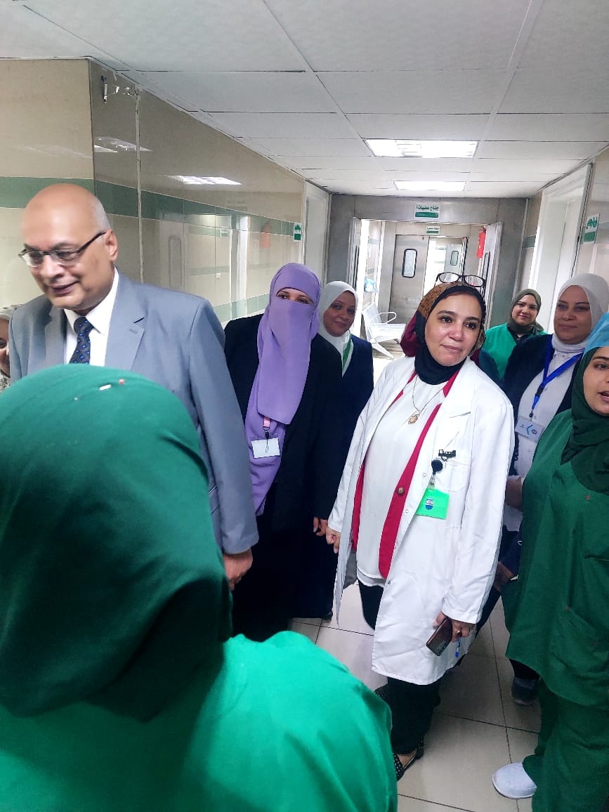 وكان فى استقباله الدكتورة شرين عبد العال مديرة إدارة العيادة وسمرإبراهيم مصطفى مديرة المدرسة بالإضافة إلى المحاسب نسمة مجدى المدير المالى والإدارى بالعيادة.