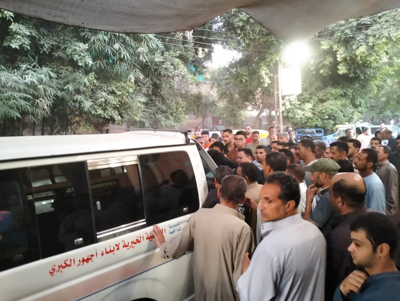 واستقبل أهالى القرية جثمان العامل بمداخل القرية بـالقليوبية، وتم تشييعه إلى مثواه الأخير بمقابر القرية، وسط صراخ وعويل السيدات، حزنًا على شهيد لقمة العيش.