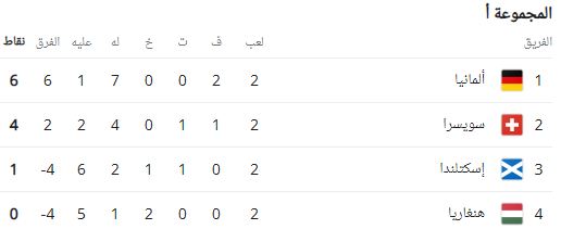 ترتيب المجموعة الأولى في يورو 2024