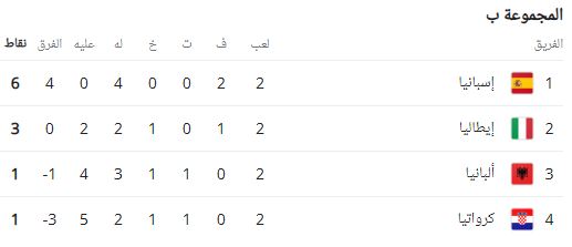 ترتيب مجموعات يورو 2024 بعد الجولة الثانية
