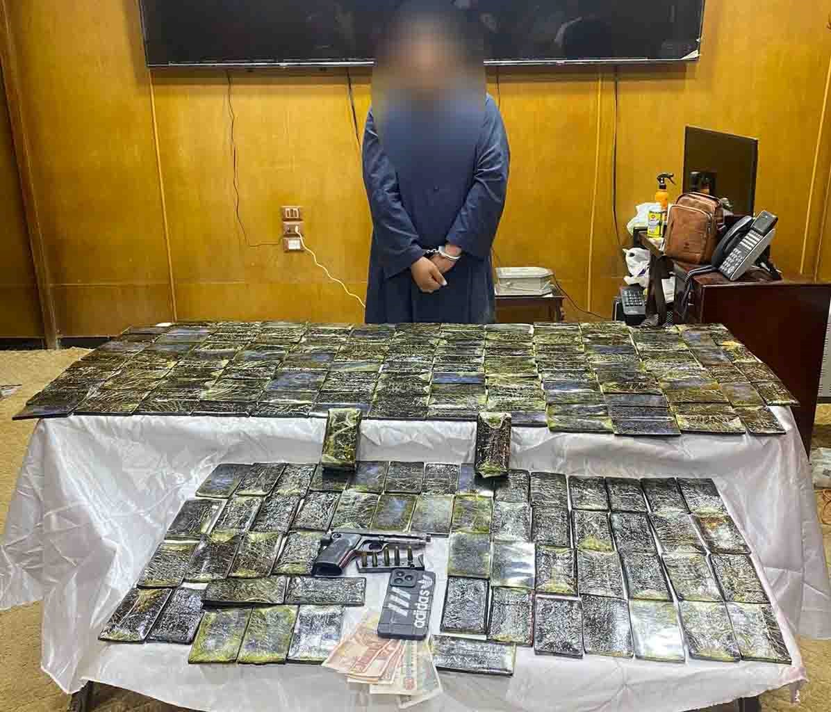 وفى جنوب سيناء؛ تم ضبط عنصر إجرامى بدائرة قسم شرطة طور سيناء وبحوزته (كيلو جرام من مخدر الحشيش- كمية من مخدر الهيروين - سلاح أبيض).