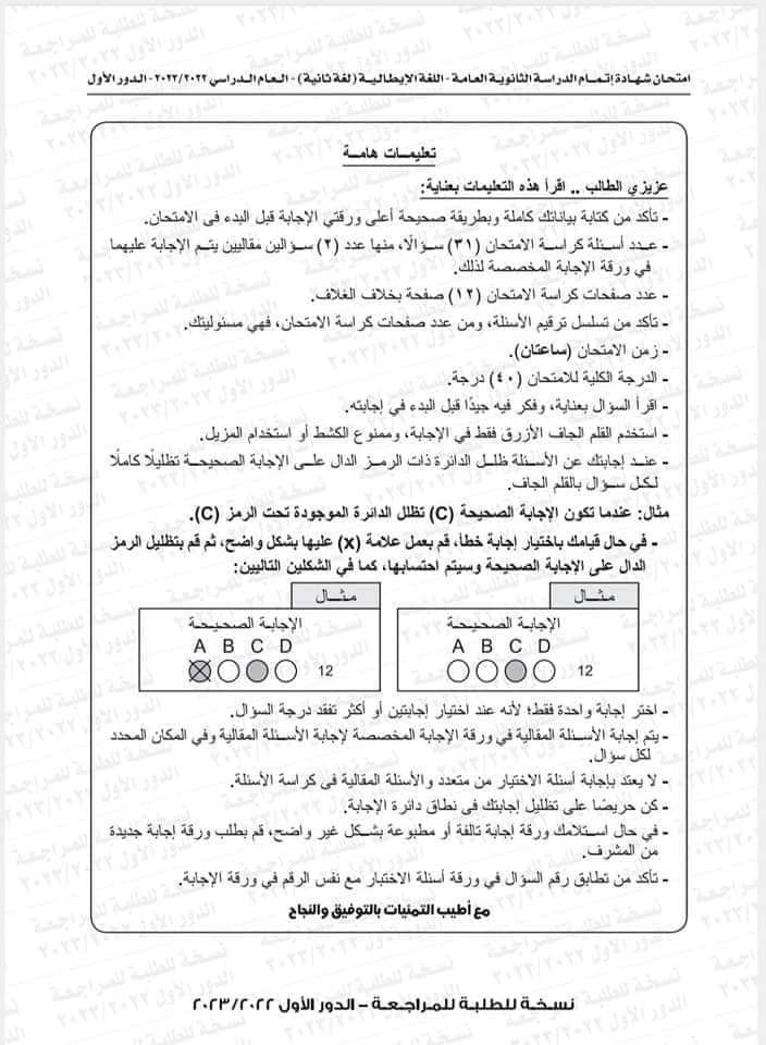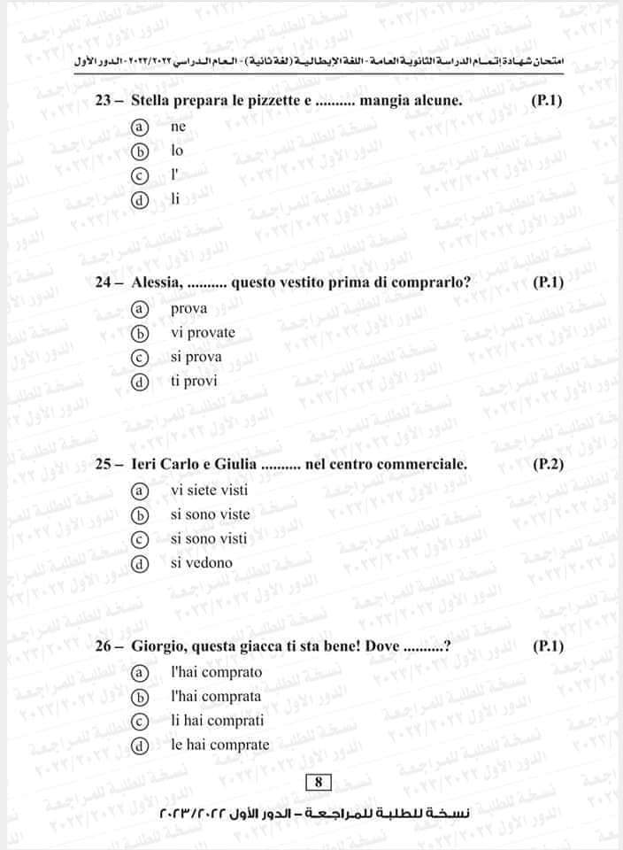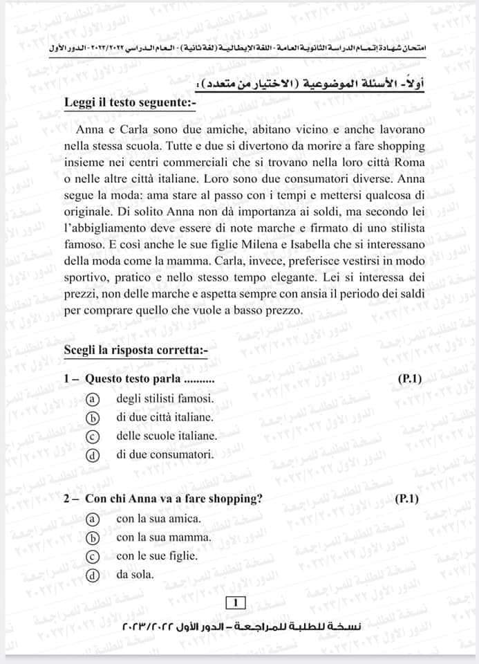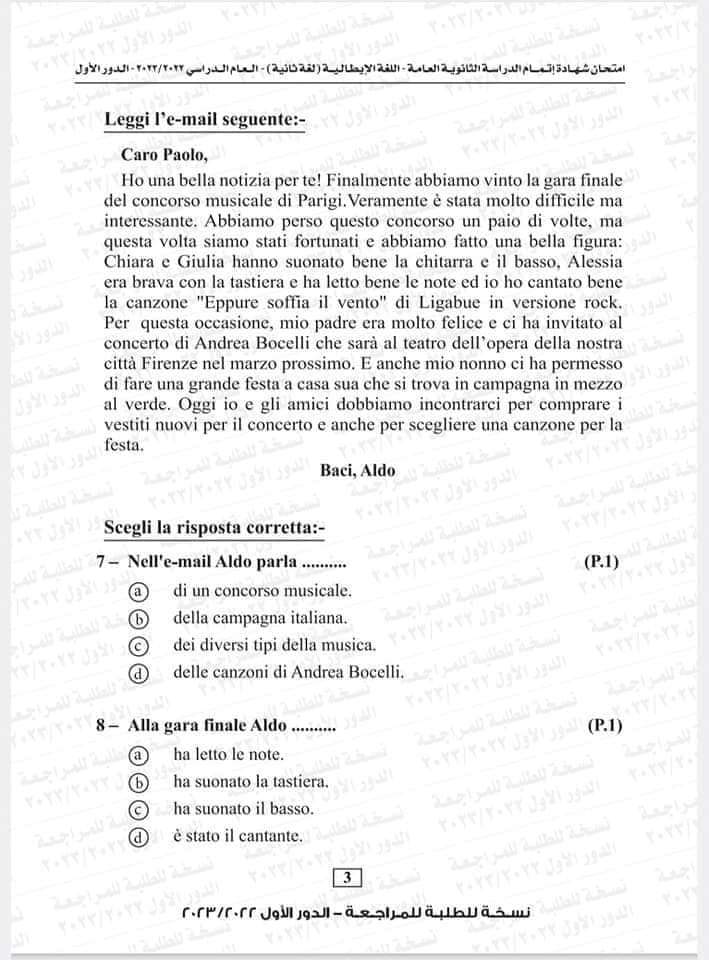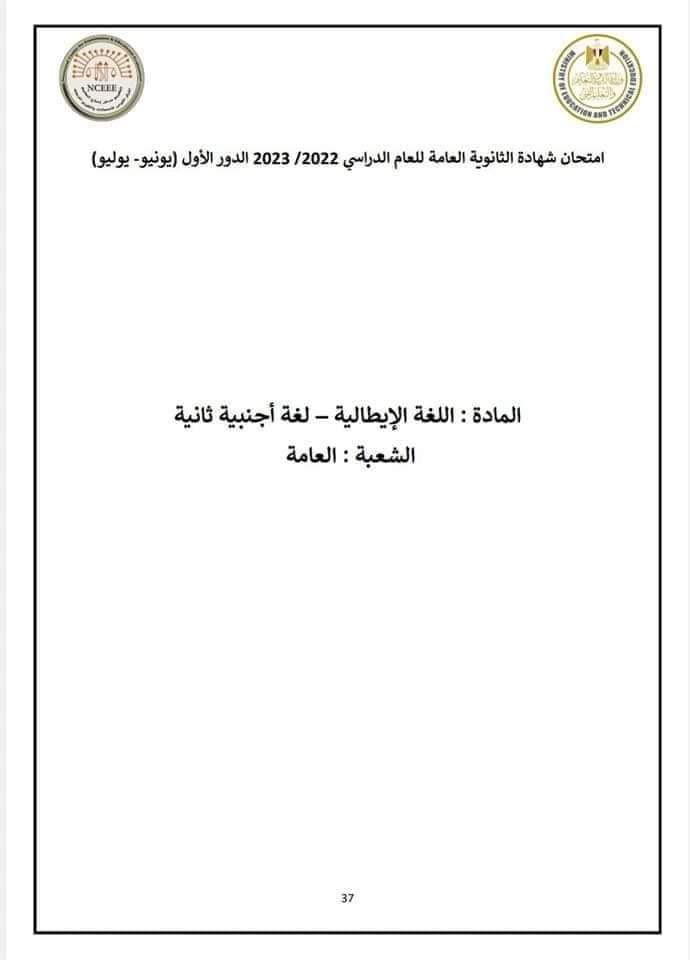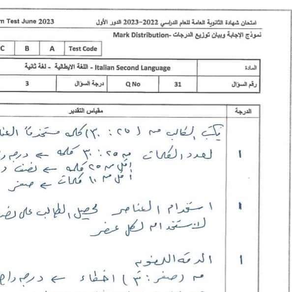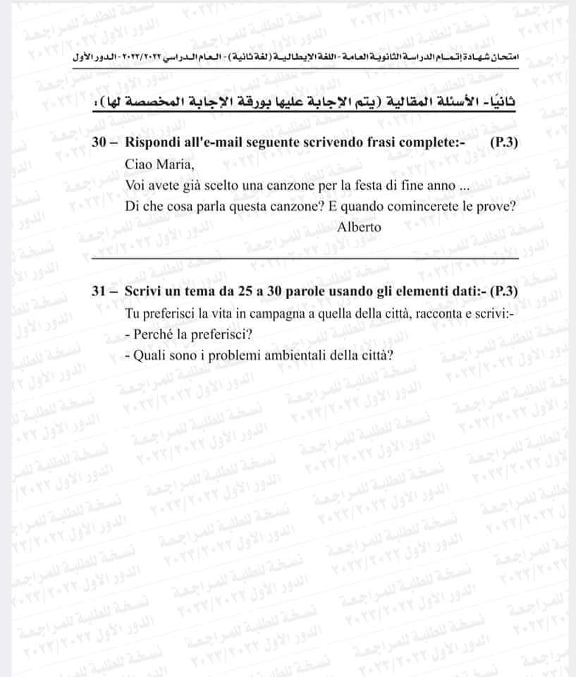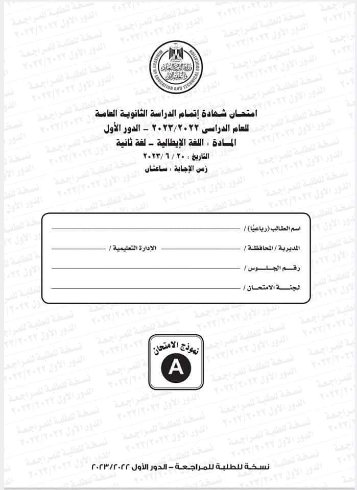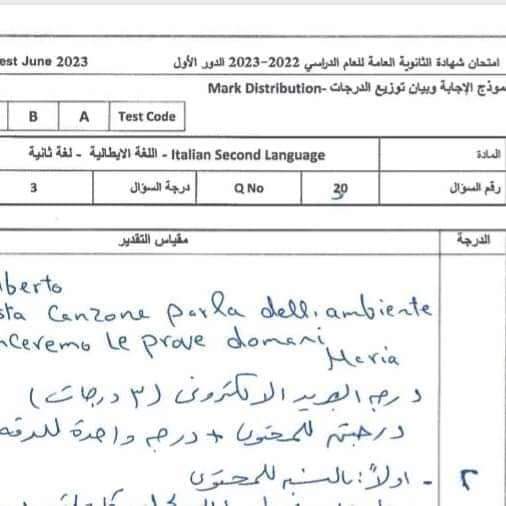 نموذج امتحان اللغة الإيطالية العام السابق 2023