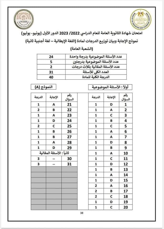 الثانوية العامة 2024، ننشر امتحان اللغة الإيطالية العام الماضي بالإجابات وتوزيع الدرجات