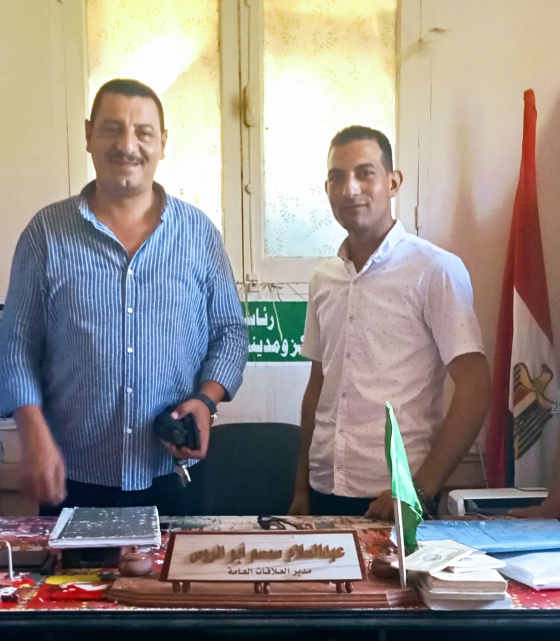 قام اليوم المهندس محمد العوضي رئيس مركز ومدينة الحسينية، بالمرور على كافة أقسام رئاسة المركز لتقديم التهنئة لكافة العاملين برئاسة المركز، وذلك في أول يوم عمل بعد عيد الأضحى المبارك.