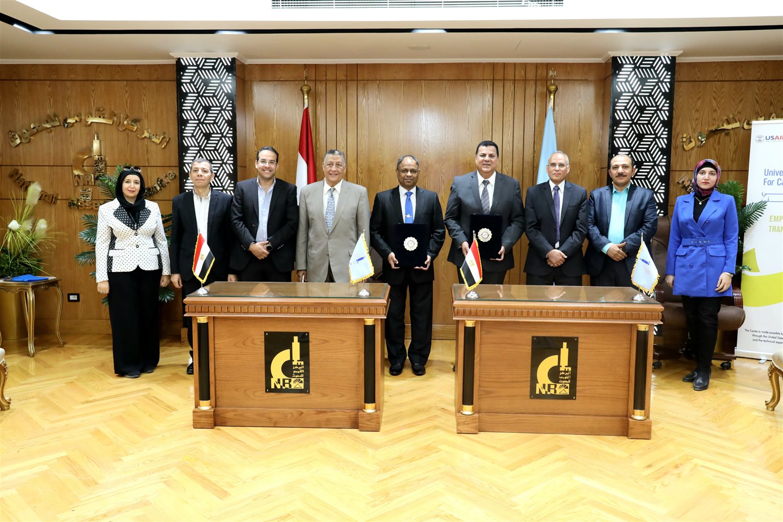 حضر التوقيع من جانب المركز الدكتور ممدوح معوض نائب رئيس المركز للشئون العلمية والبحثية، وعدد من عمداء المعاهد بالمركز والدكتور بهاء مصطفى كامل مهنى الأستاذ المساعد بمعهد البحوث الهندسية بالمركز ومنتدب وكيلا للكلية بجامعة بنى سويف التكنولوجية ومنسقا للاتفاقية، ومن جانب الجامعة الدكتور علي عبد التواب عميد الكلية المصرية الكورية لتكنولوجيا الصناعة والطاقة بالجامعة، والدكتور عماد جميل وكيل الكلية لشؤون الطلاب، وعدد من أعضاء هيئة التدريس بالجامعة.
