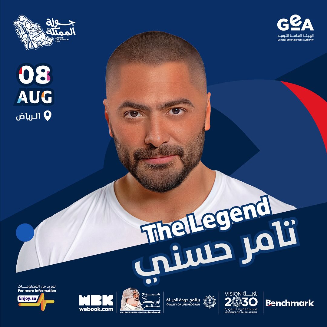 تامر حسني ، تشهد المملكة العربية السعودية خلال الأيام المقبلة إحياء عدد من الحفلات الضخمة للنجوم في مصر والوطن العربي ضمن فعاليات جولة المملكة والفعاليات المصاحبة لكأس العالم للرياضيات الإلكترونية بالرياض.